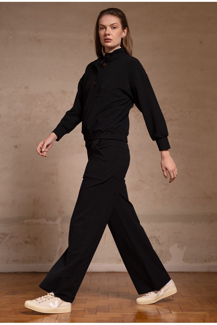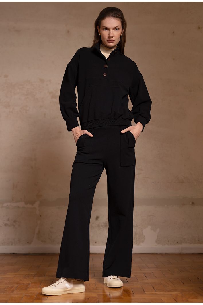 Calça Delarof e Blusa Moleton Stellas: Tecido de malha tecnológica estruturada e super confortável. Toque creponado que deixa a malha mais sofisticada e diferenciada.