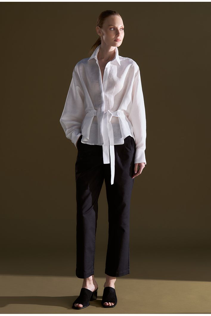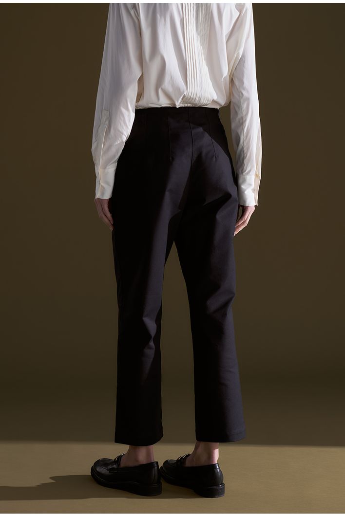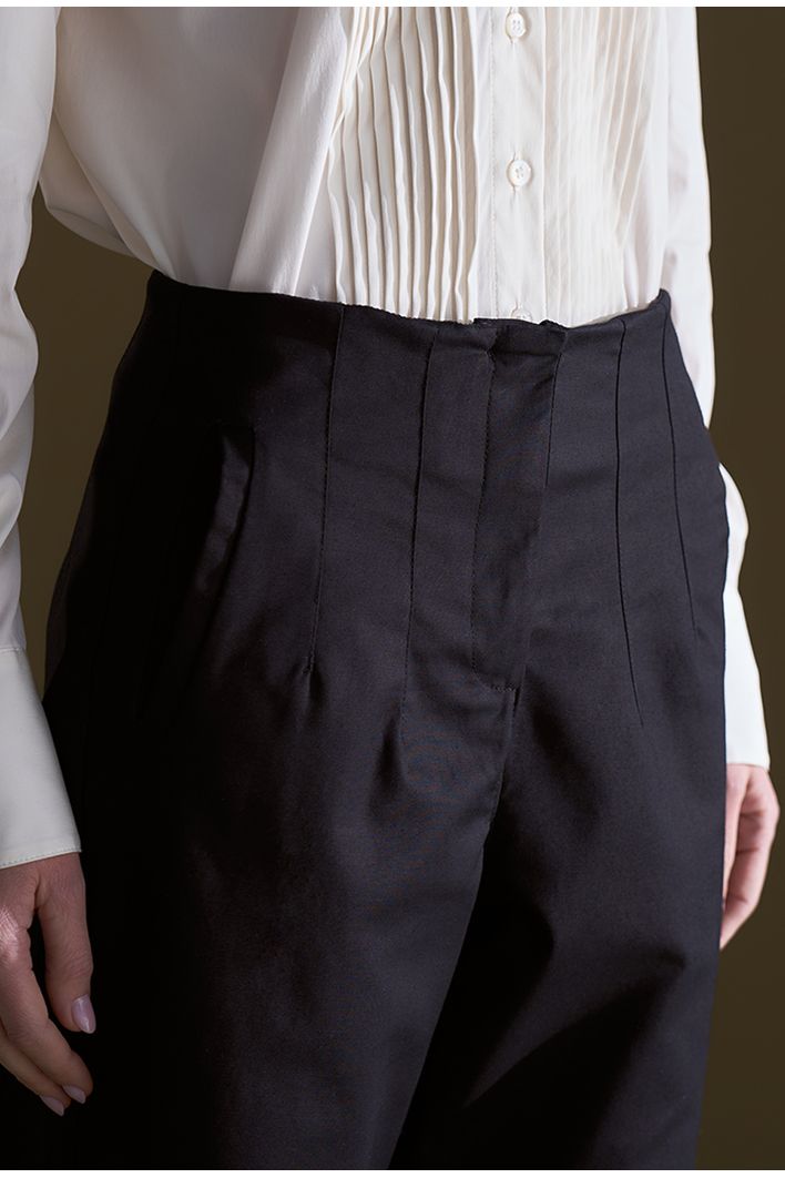 Calça Gorgona com modelagem reta, confeccionada em tecido estruturado que garante caimento elegante. Possui cintura alta, pregas sutis na parte frontal e bolsos embutidos laterais, proporcionando um visual sofisticado e versátil. Ideal para compor looks formais ou casuais refinados.