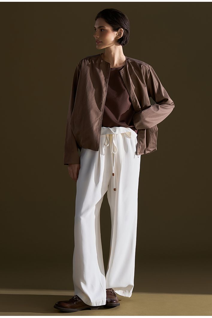 A calça Jalé é a definição de elegância leve e moderna. Com modelagem reta e caimento fluido, ela traz sofisticação para produções do dia a dia ou ocasiões especiais. O cós largo com detalhe de amarração frontal valoriza a cintura e garante conforto ao vestir. As fendas discretas nas pernas adicionam um toque de movimento e originalidade à peça, enquanto o tecido leve oferece fluidez e caimento impecável. Uma escolha perfeita para quem busca estilo com conforto e versatilidade.