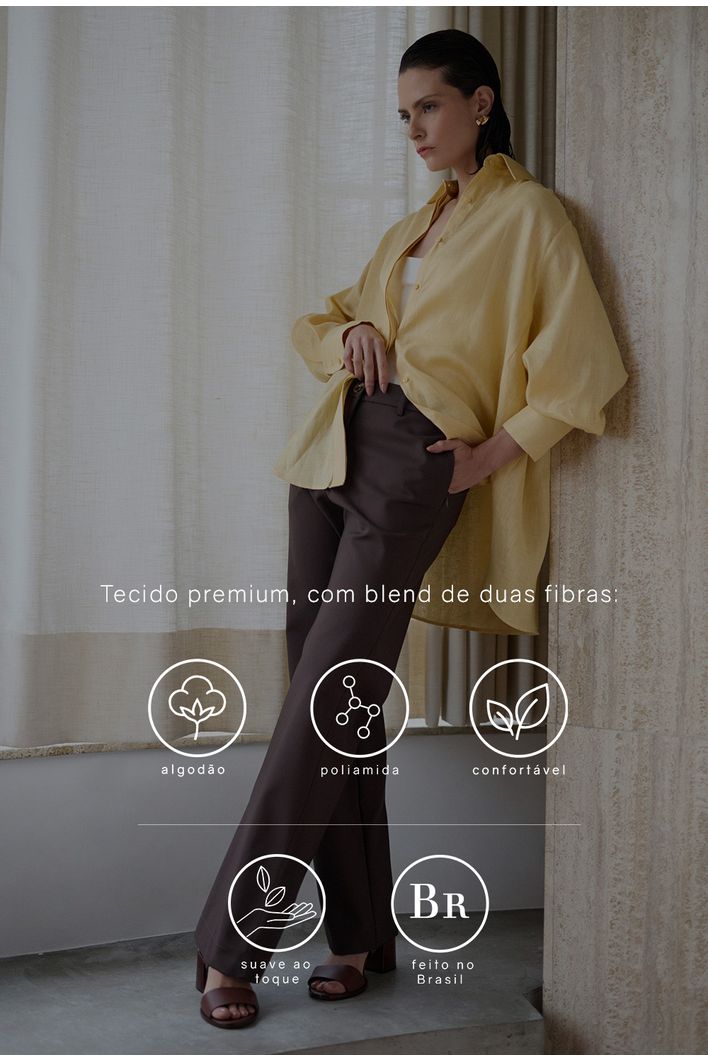 Versátil e atemporal, é a peça ideal para composições que transitam entre o casual e o sofisticado — perfeita para acompanhar camisas, regatas ou blazers, compondo produções equilibradas e cheias de estilo. Uma escolha essencial para quem valoriza design limpo, qualidade e propósito.