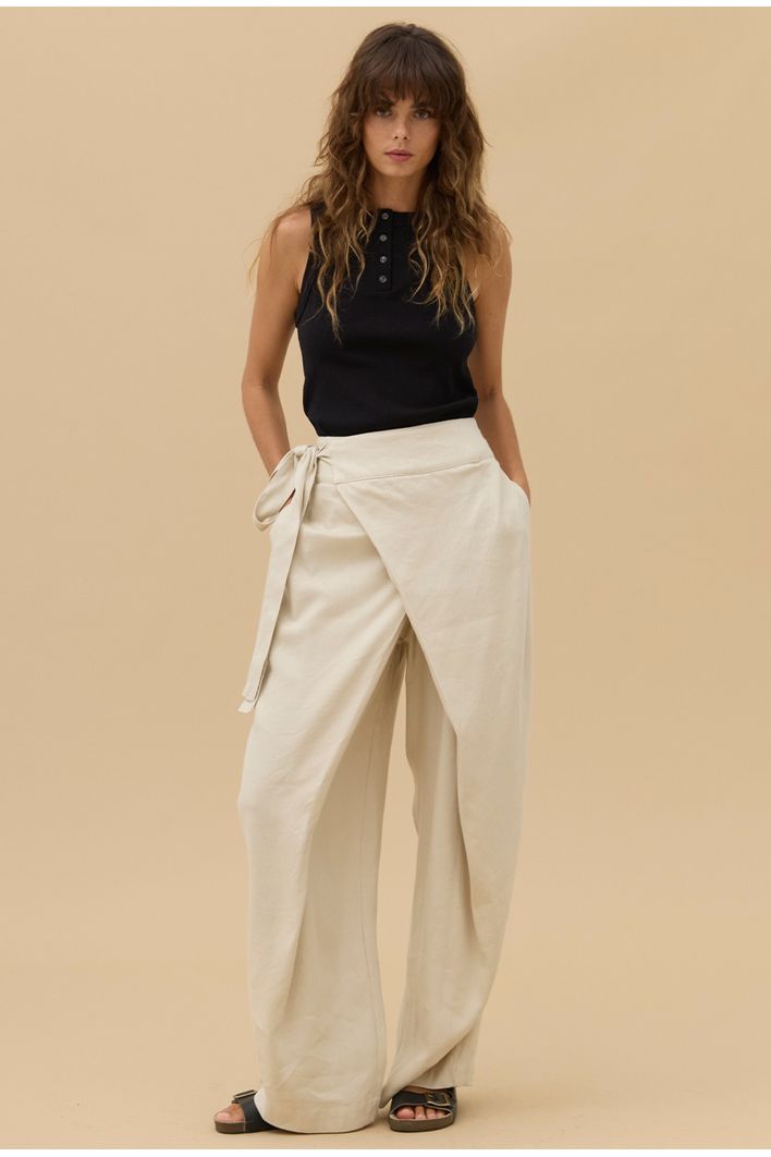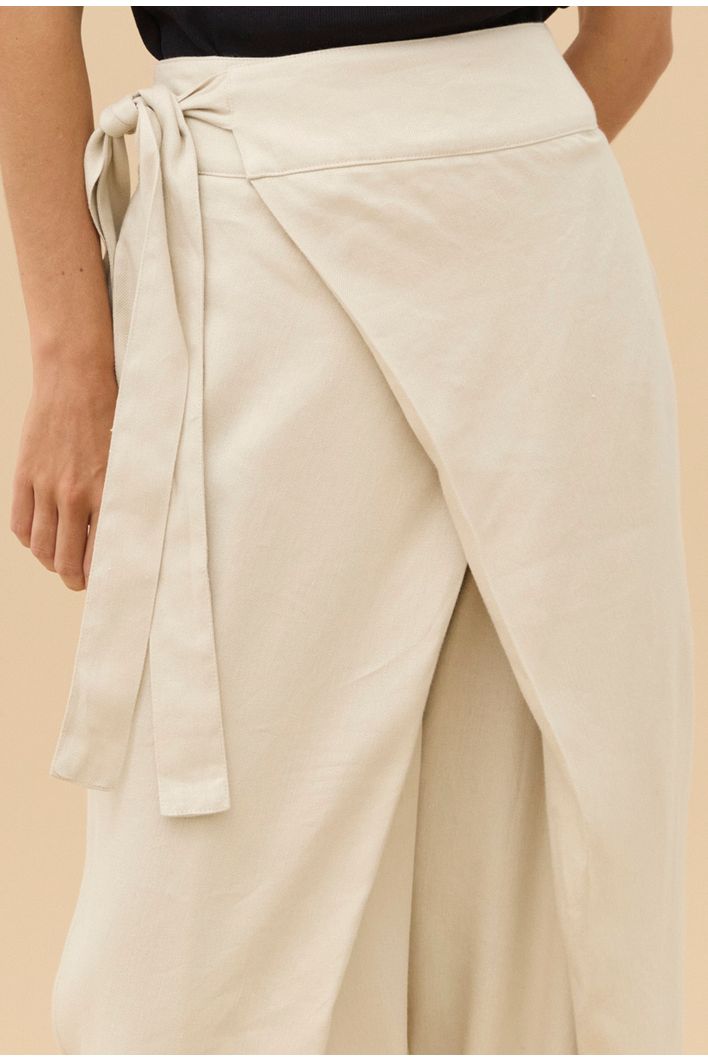 Sua modelagem sofisticada e autêntica destaca-se pelo transpasse com amarração, um detalhe elegante que valoriza a cintura e permite ajuste perfeito ao corpo. Os bolsos laterais adicionam funcionalidade e praticidade ao design minimalista e versátil.