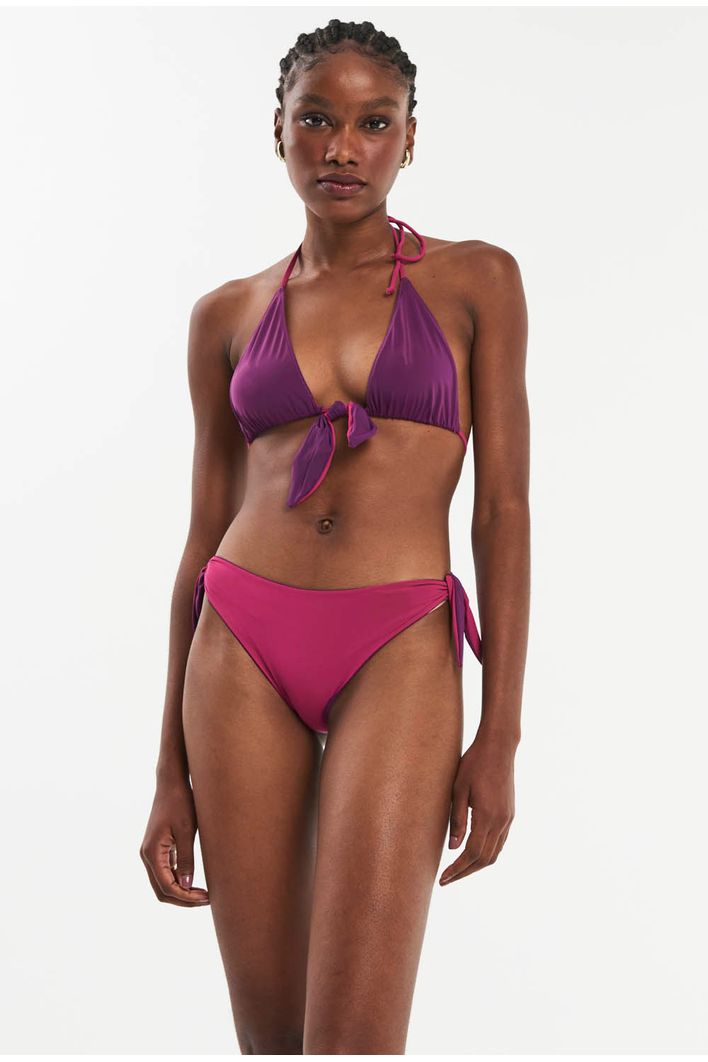 Feito em malha biodegradável, nossa calcinha possui amarração ajustável nas laterais, costuras embutidas, por ser dupla face ela pode ser usada dos dois lados tornando a peça ainda mais versátil.