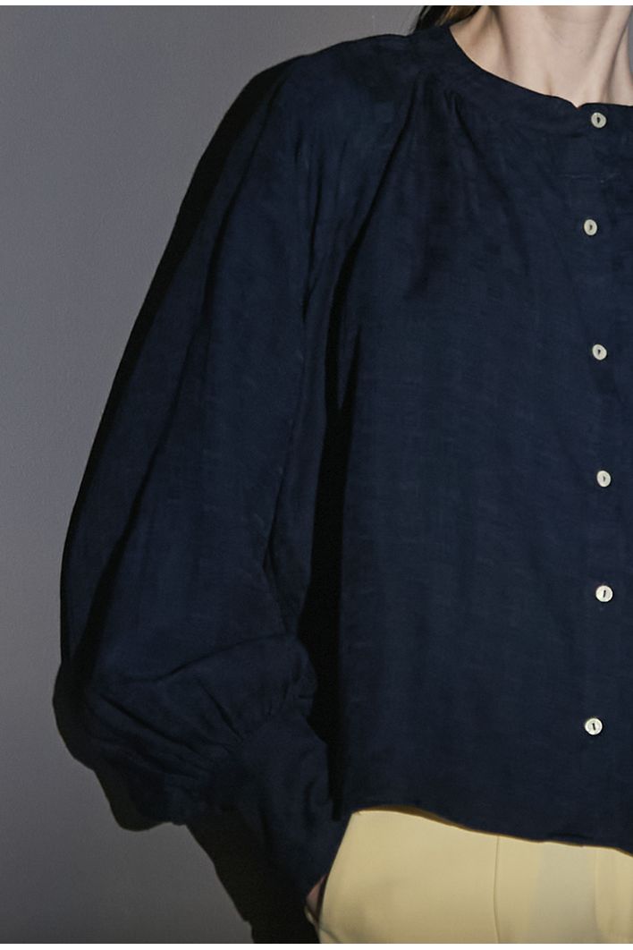 As mangas apresentam um volume bufante, contrastando com o punho mais justo, o que adiciona um toque versátil e distintivo ao visual. Essa combinação de elementos cria uma estética única, que é ao mesmo tempo sofisticada e moderna.