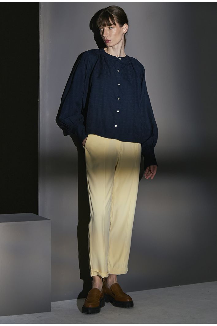 A Blusa Burgazaga é uma peça verdadeiramente excepcional, feita com um tecido especial que combina um blend de três fibras nobres. E sua superfície com textura maquinetada que confere à peça uma superfície delicada e elegante.