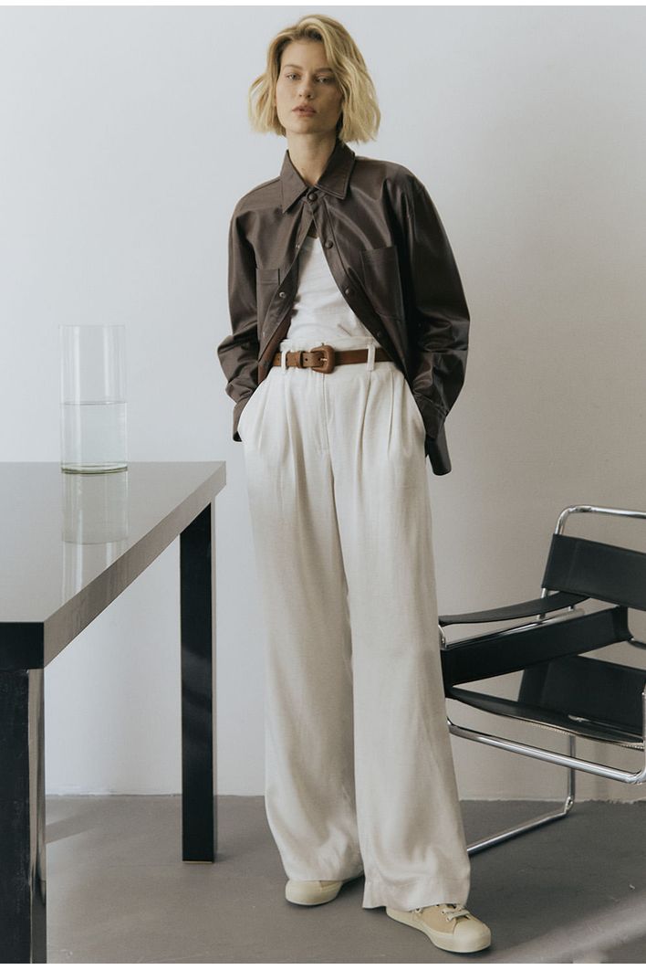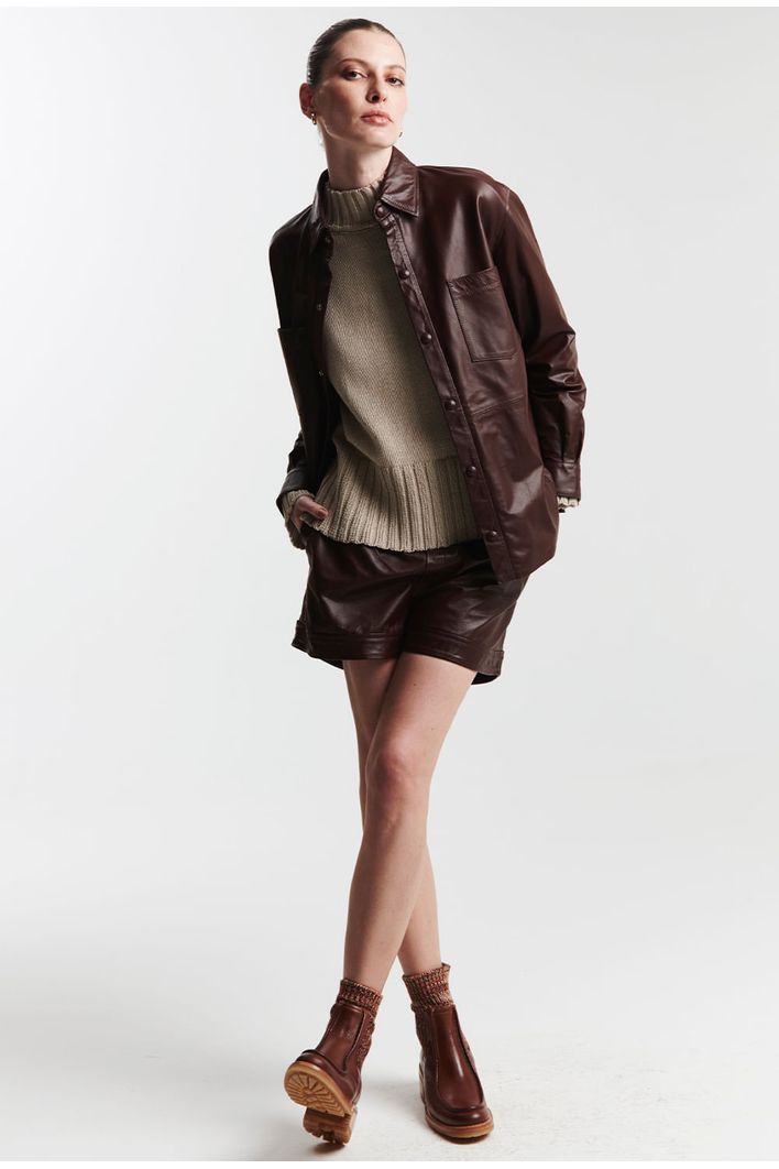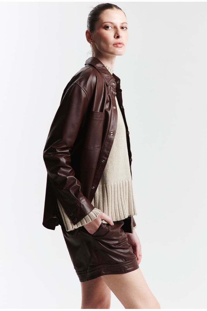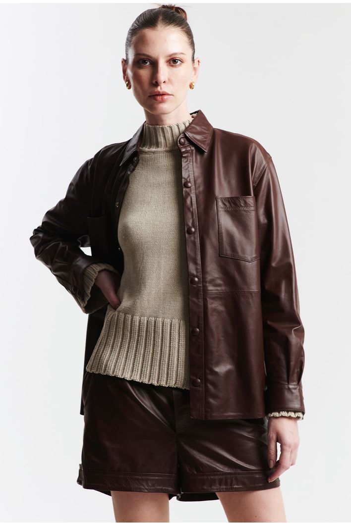 Nossa camisa Toliara é um basic muito estiloso, confeccionada com couro certificado, o que garante não apenas uma altíssima qualidade, mas também um processo saudável e sustentável de produção. Possui corte elegante e modelagem levemente ampla, adicionando um charme extra à peça. É uma escolha atemporal que, devido à sua alta qualidade, estará ao seu lado em diversos momentos. Se você deseja compor visuais mais despojados, uma ótima opção é combinar a Toliara com peças inferiores em jeans e sobreposições de modelagens mais amplas, finalizando com sapatos casuais e confortáveis. Agora, se o seu objetivo é criar produções mais sofisticadas, que tal experimentar combiná-la com peças inferiores de corte fino e elegante, finalizando o look com sapatos de salto?