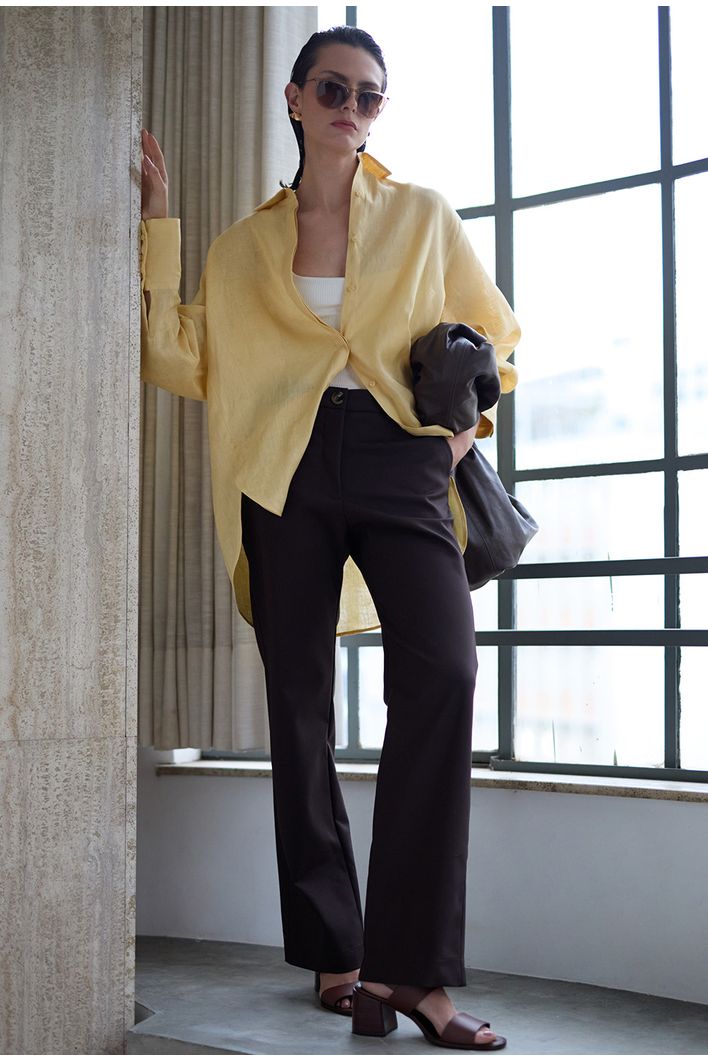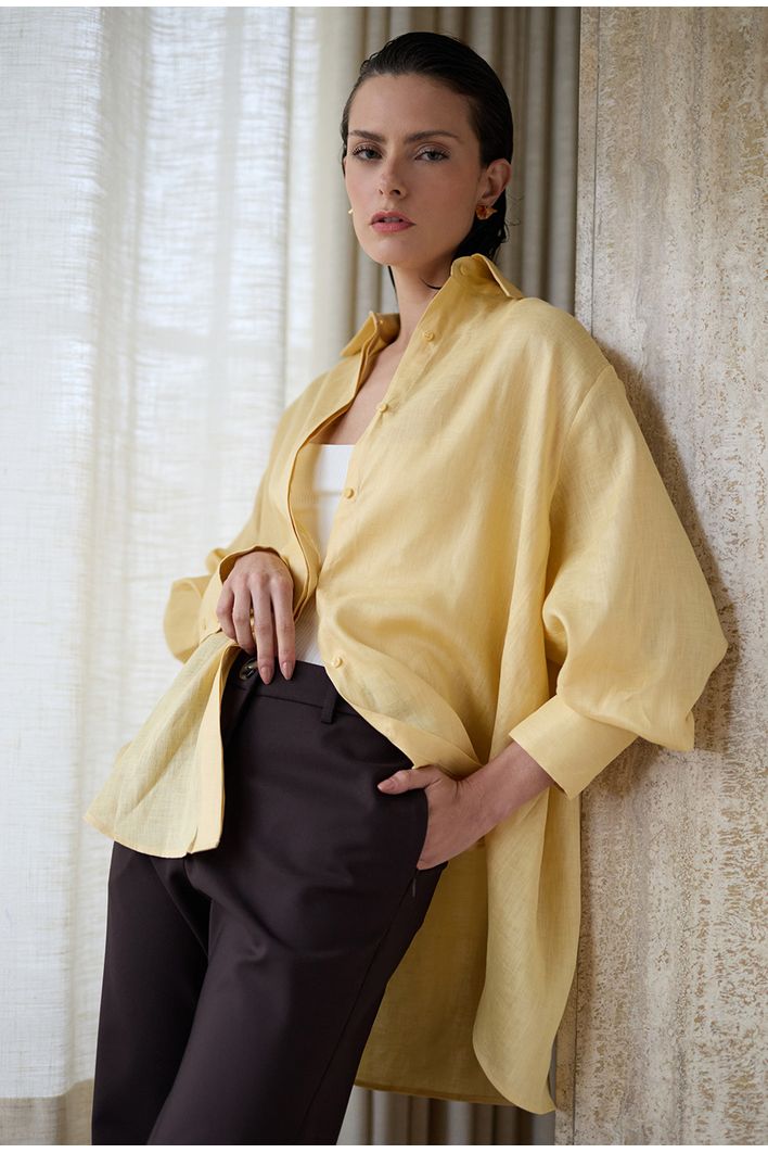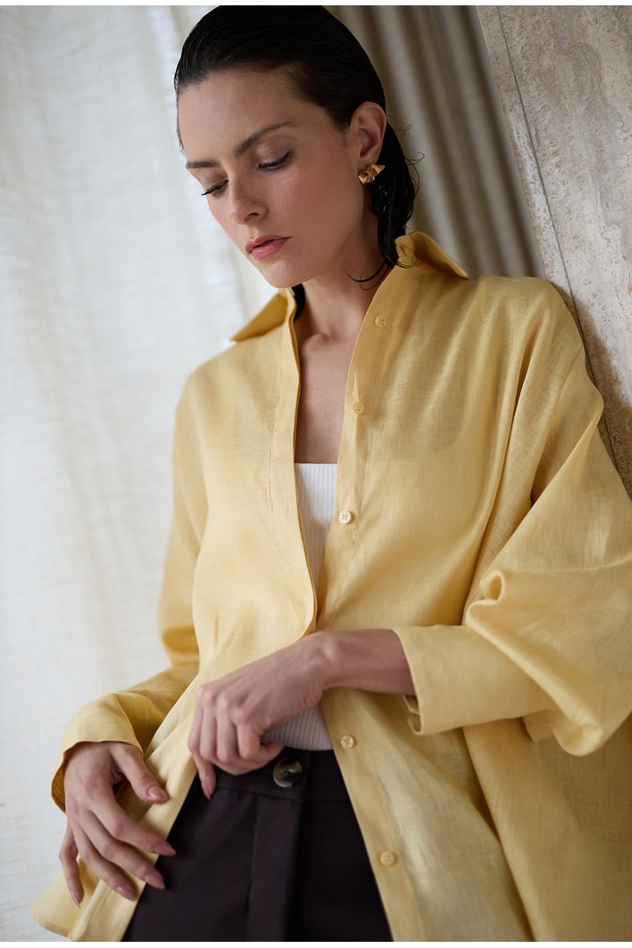 Inspirada na nossa best-seller Camisa Dinant, a Camisa Cuba surge com uma modelagem ainda mais especial, perfeita para os dias quentes. Confeccionada em linho, esta peça combina leveza e um caimento fluido, ideal para quem busca um visual cheio de estilo e conforto. Disponível em várias cores, permite que você escolha o tom que melhor reflete o seu dia. Com um comprimento oversized e um toque despojado, a Camisa Cuba traz uma assimetria elegante entre a frente e as costas, criando uma linha moderna que valoriza a silhueta e dá movimento ao look. Os botões frontais delicados completam a peça com charme, tornando-a perfeita para combinações versáteis que vão do casual ao sofisticado.