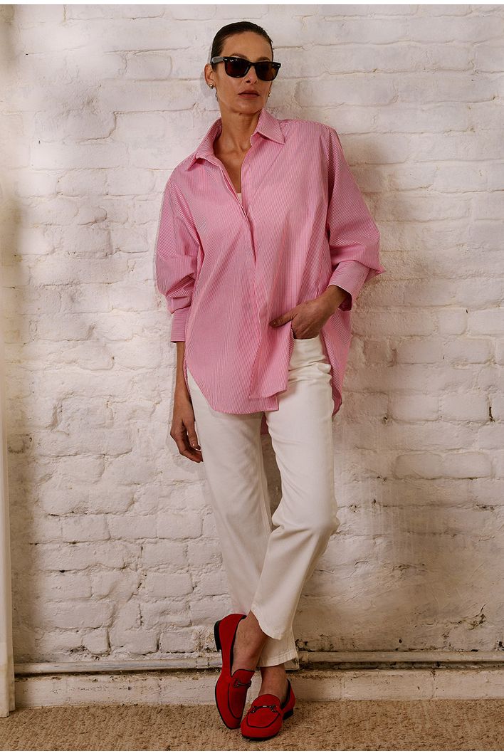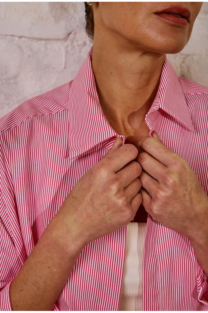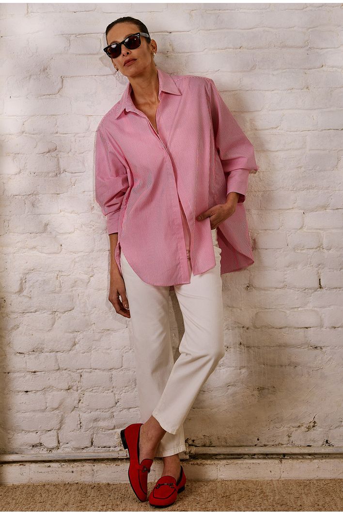 A Camisa Dinant Listrada apresenta modelagem ampla e descontraída, com caimento leve que garante conforto e versatilidade. Confeccionada em tecido de toque macio, traz listras finas que adicionam sofisticação e um ar moderno ao visual. O design clássico de colarinho e mangas longas com punho simples permite composições elegantes ou casuais, seja usada fechada ou sobreposta a tops e blusas. Uma peça atemporal, perfeita para transitar entre o estilo urbano e o office look, sempre com um toque refinado.