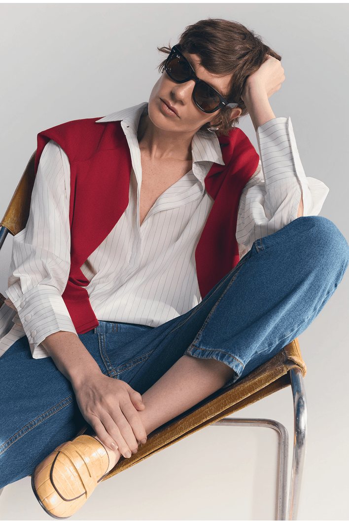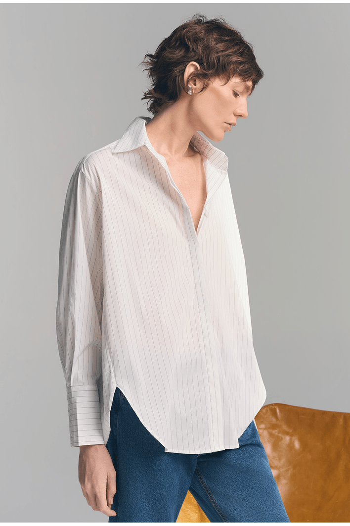 Camisa Feminina Listrada Ampla com Caimento Fluido - MyBasic