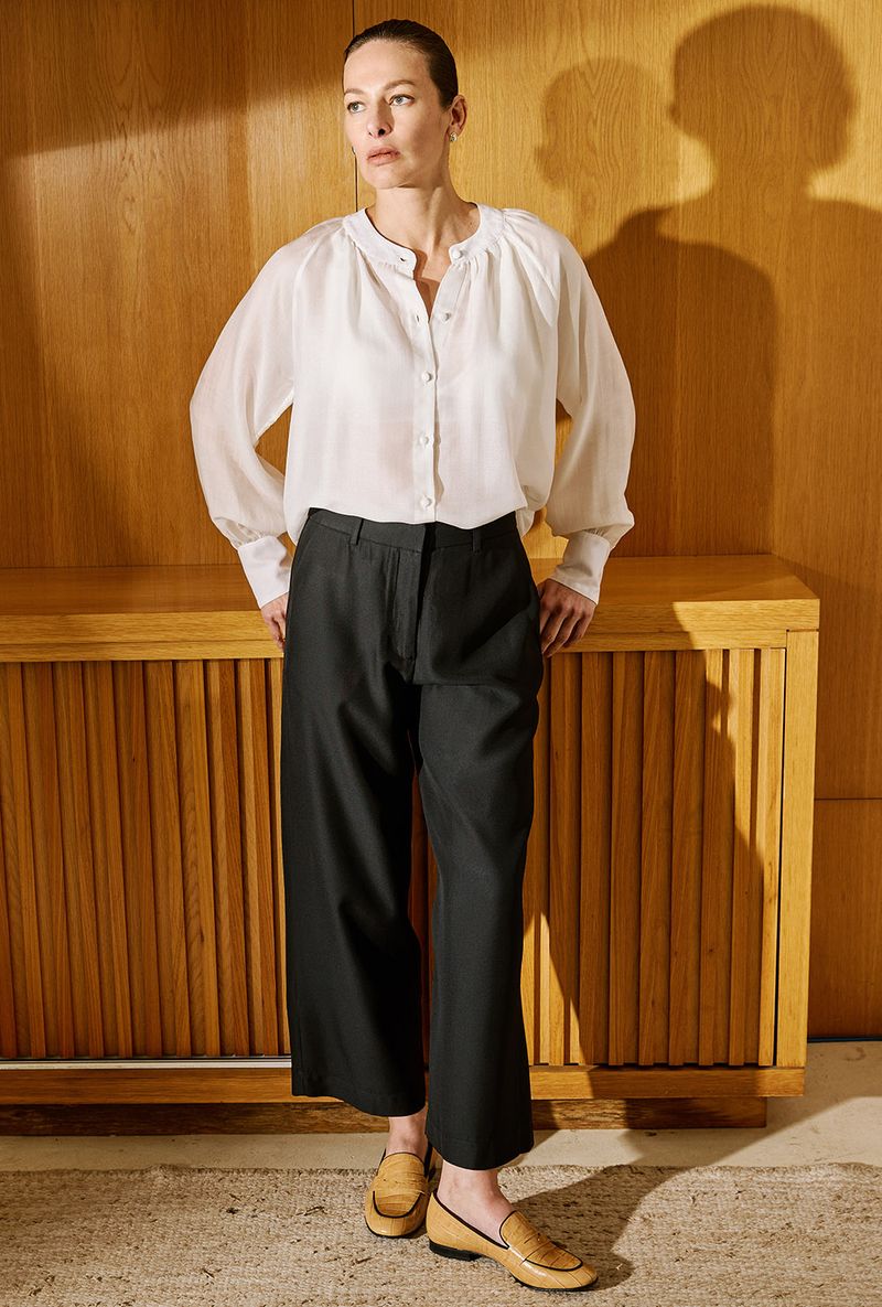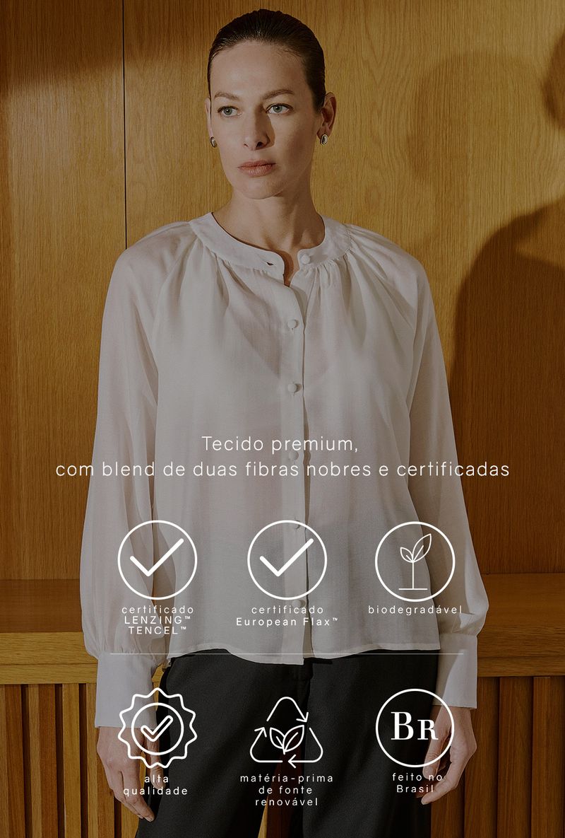 O tecido utilizado nesta peça possui duas certificações: Lyocell Lenzing e European Flax.