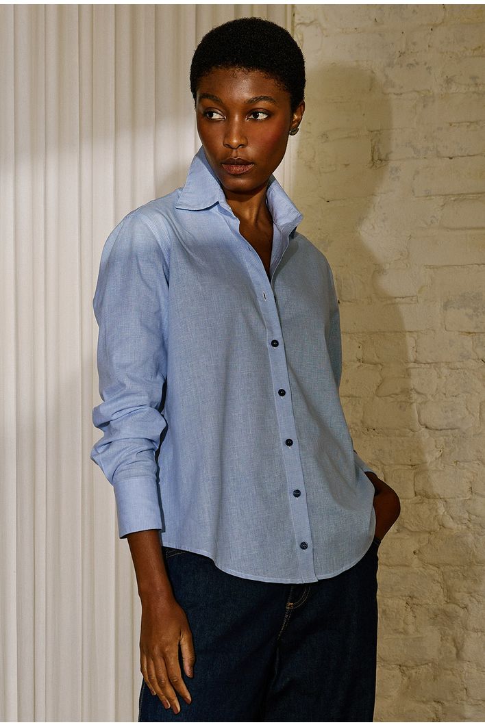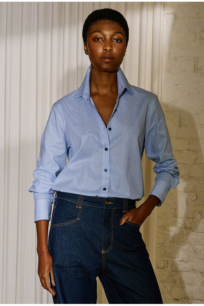 Camisa Grossé Slim de design moderno, confeccionada em tecido leve que proporciona conforto e elegância no uso. Possui gola clássica estruturada, fechamento frontal por botões em destaque e punhos alongados com abotoamento duplo, garantindo um toque sofisticado. Versátil, é uma peça ideal tanto para composições formais quanto para looks casuais refinados.