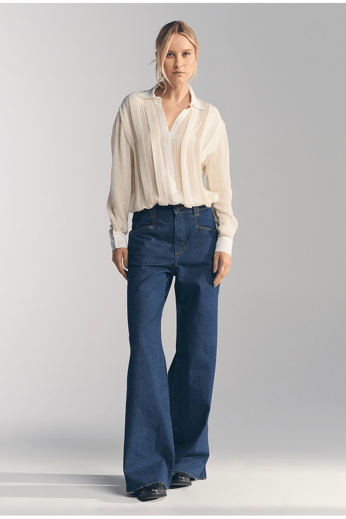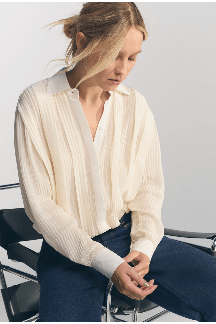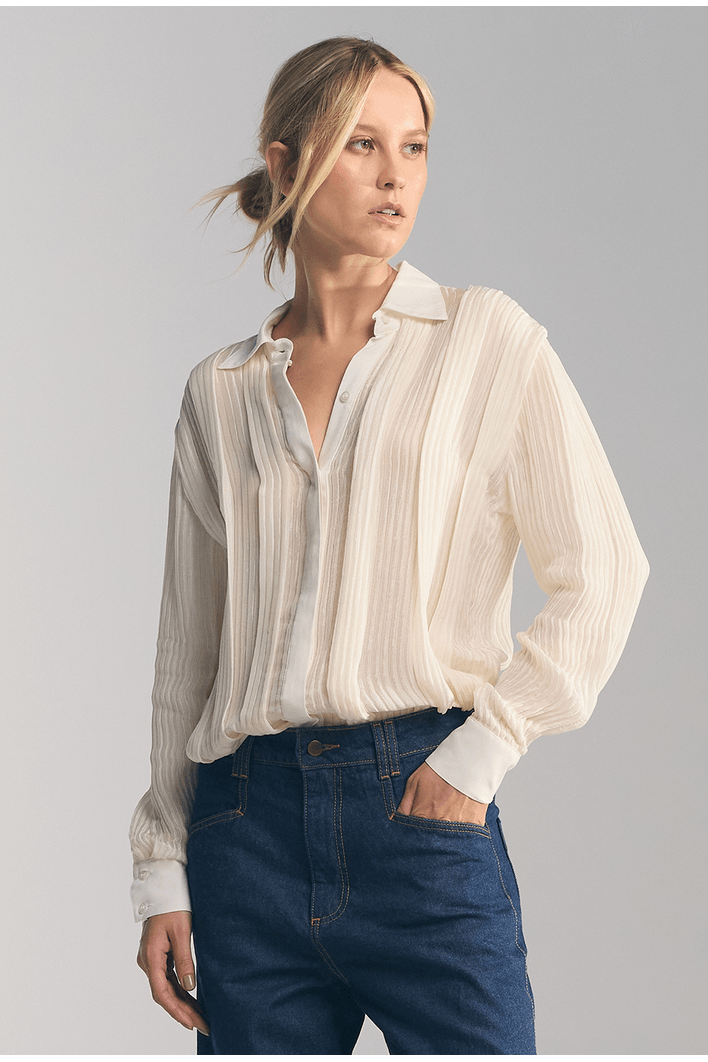 Camisa Lembata Em Seda Texturizada Com Pregas Off White
