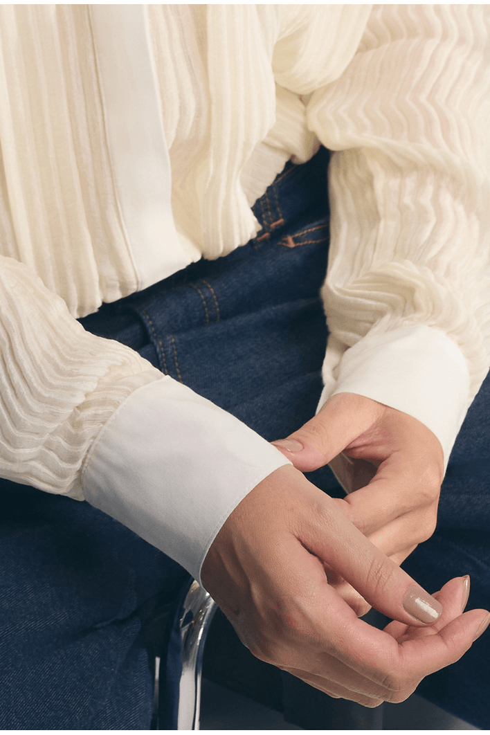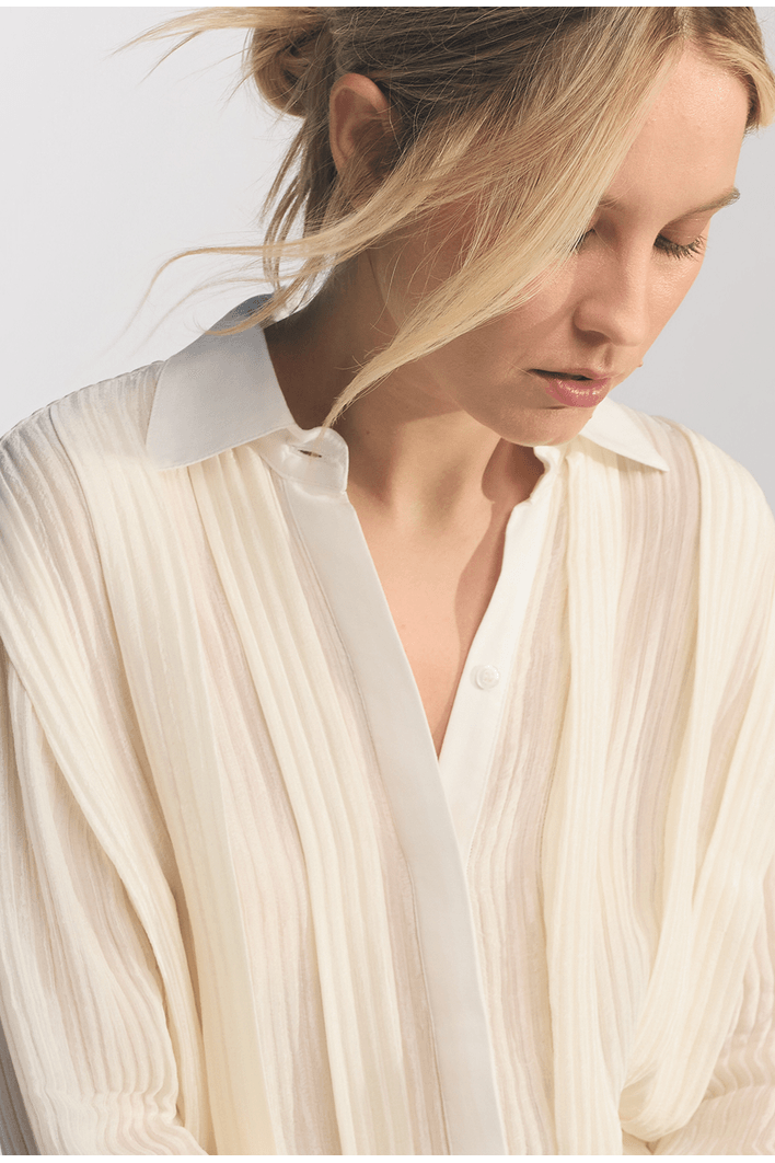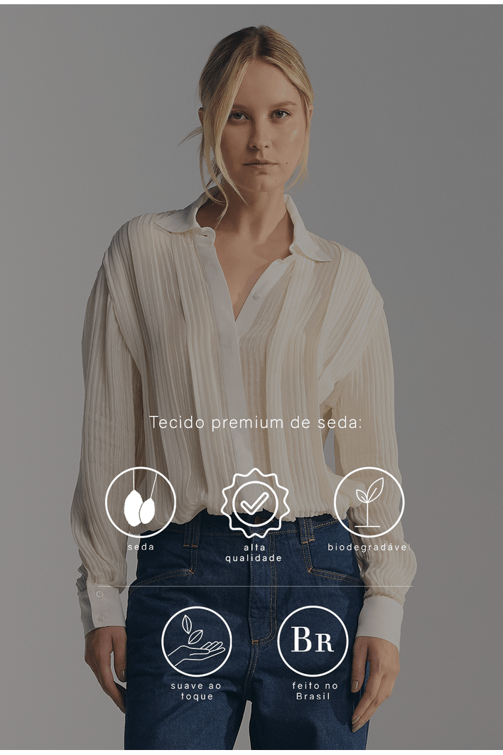 RoupasCamisasCamisa Lembata Em Seda Texturizada Com Pregas Off White