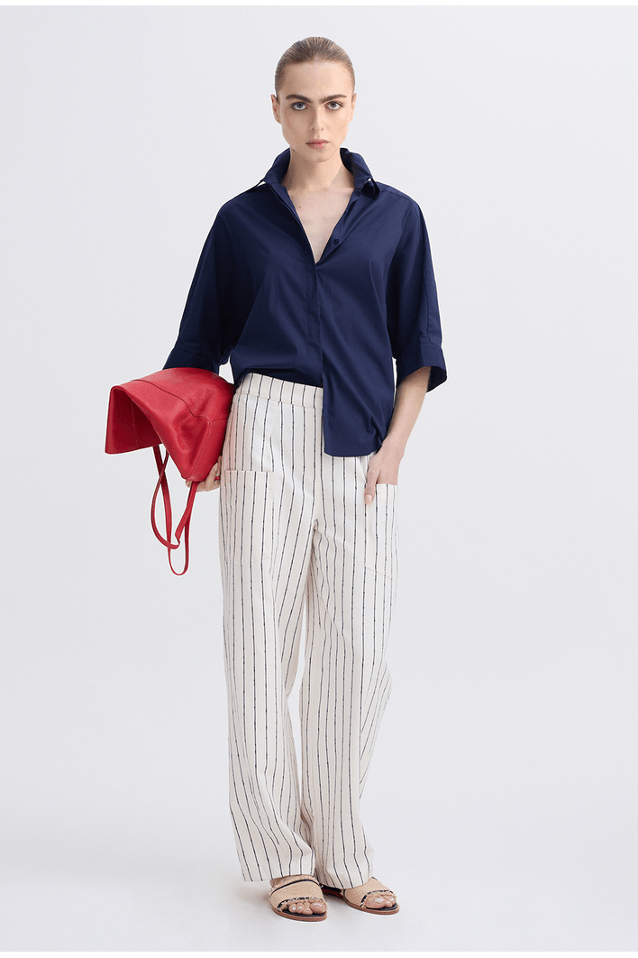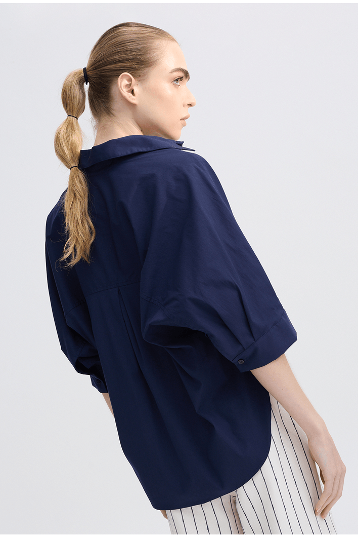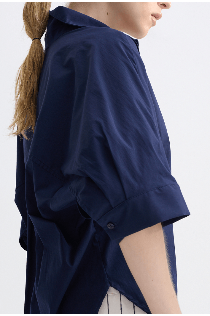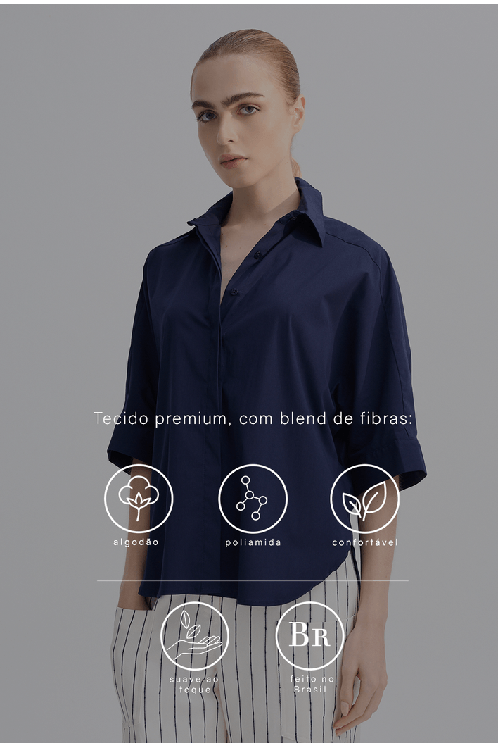 RoupasBlusasCamisa Leygues Oversized de Alfaiataria Manga Curta Marinho