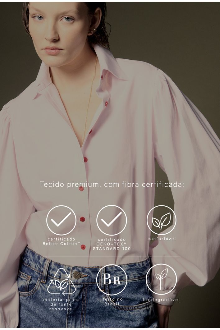 O tecido utilizado nesta peça possui certificação BCI(Better Cotton Initiative) e OEKO-TEX.