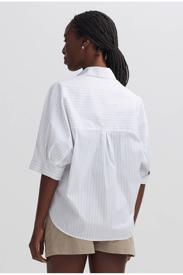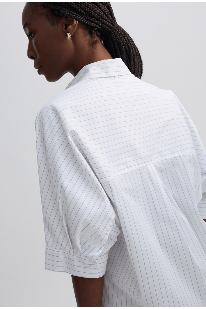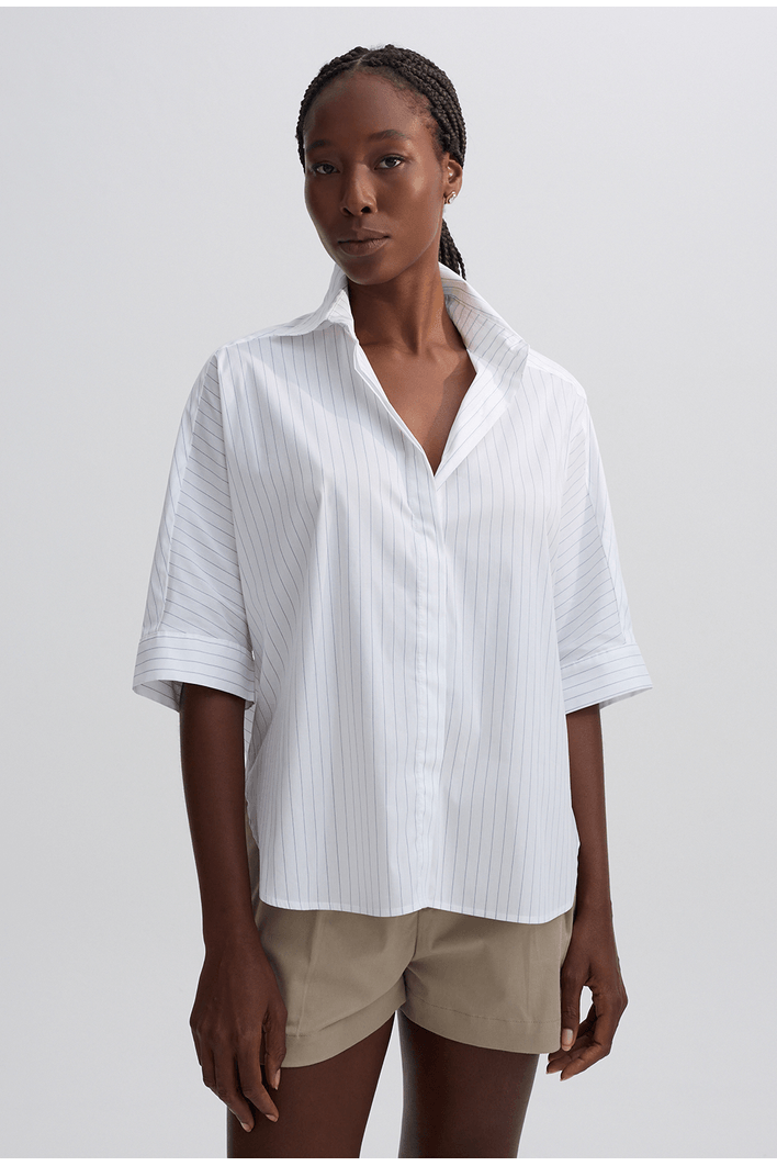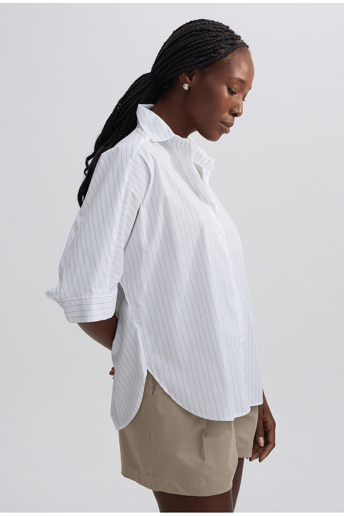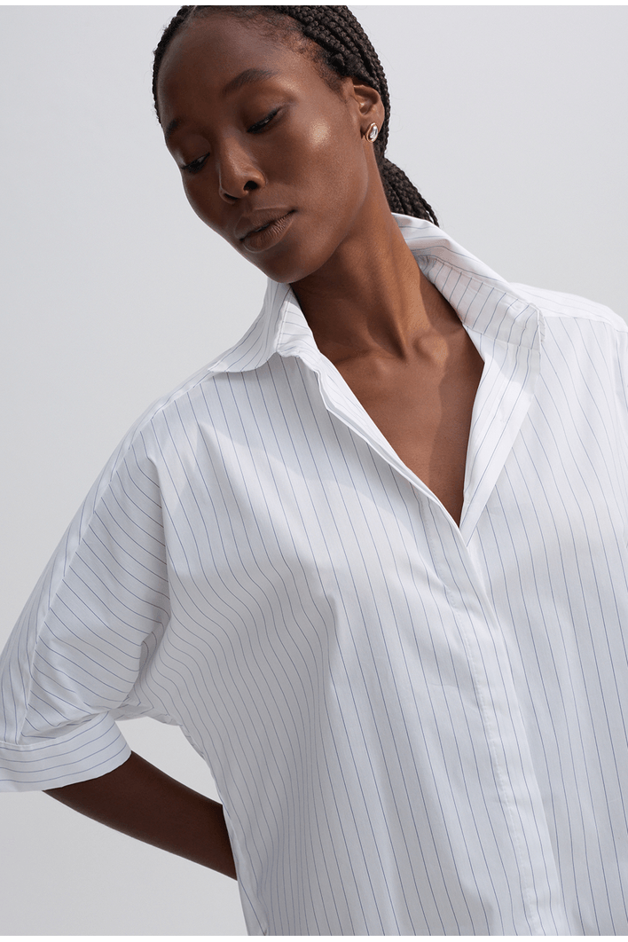 A camisa Diomedes é a união perfeita entre sofisticação, conforto e design atemporal. Confeccionada em algodão egípcio, considerado um dos mais nobres do mundo, sua composição é feita de fibras longas e finas, garantindo um toque excepcionalmente macio, alta durabilidade e um caimento impecável. Além disso, o tecido permite melhor respirabilidade, proporcionando frescor e conforto ao longo do dia. Com modelagem oversized, a peça traz um ar moderno e despojado, ideal para composições versáteis e elegantes. As listras verticais, além de serem um clássico atemporal, criam um efeito visual que alonga a silhueta, valorizando qualquer tipo de corpo.
