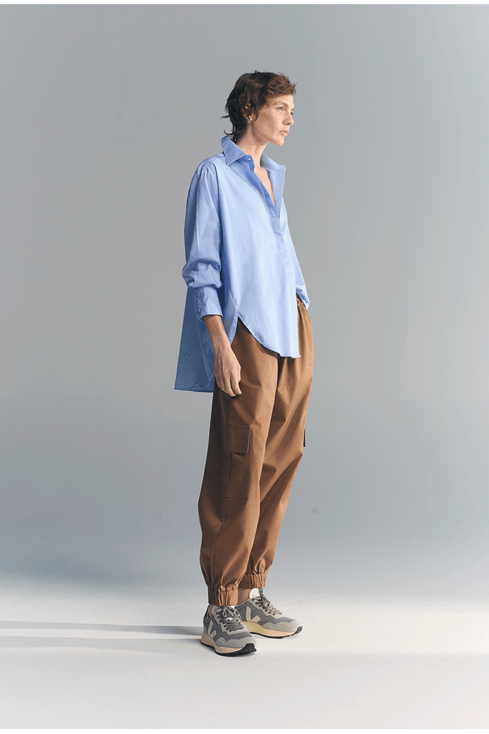 Com modelagem do nosso best-seller, Camisa Dinant, a Camisa Eliria é confeccionada em algodão egípcio, conhecido por suas fibras longas e finas que proporciona toque suave, e durabilidade ao modelo. Com corte super especial é cheia de detalhes que fazem toda a diferença: Possui a modelagem ampla, punho largo com botões e mangas largas. Cool e versátil, ela é base para várias produções e pode ser usada de várias formas: Para dentro, para fora, aberta, fechadinha, com decote mais profundo ou mais certinho, com nozinho na frente.