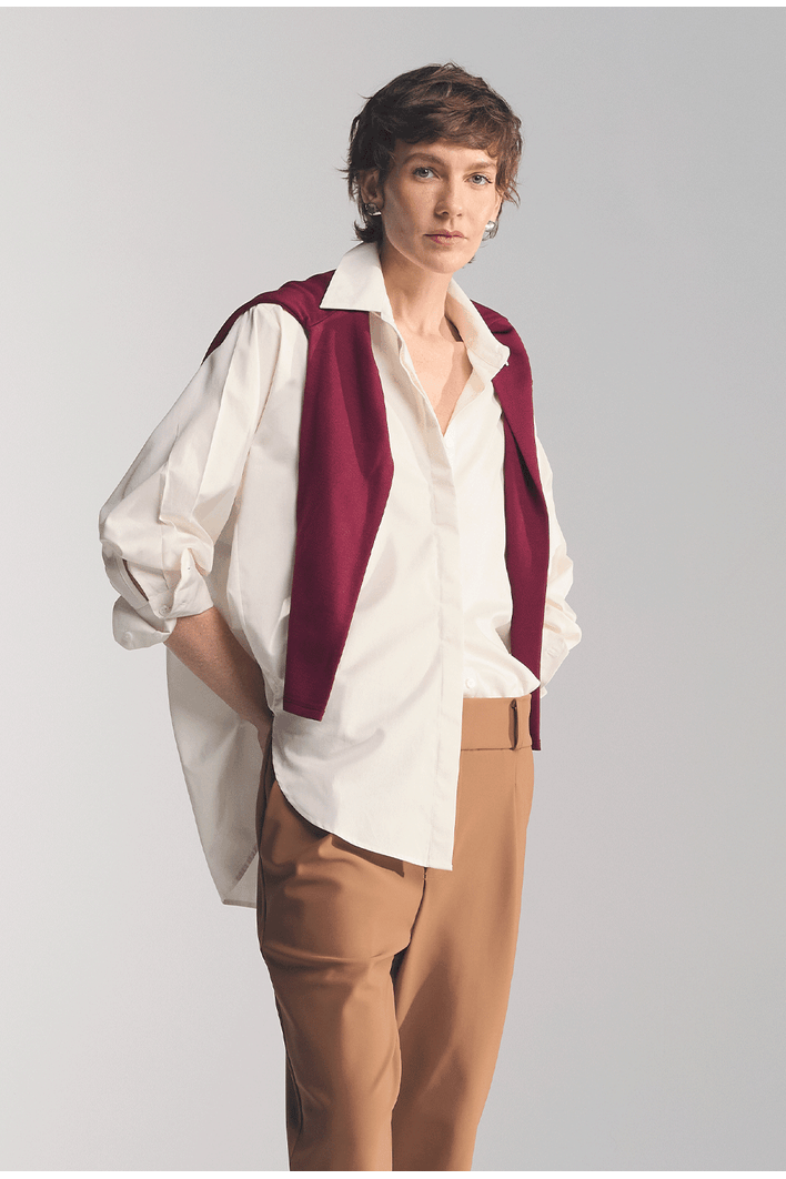 Com modelagem do nosso best-seller, Camisa Dinant, a Camisa Eliria é confeccionada em algodão egípcio, conhecido por suas fibras longas e finas que proporciona toque suave, e durabilidade ao modelo. Com corte super especial é cheia de detalhes que fazem toda a diferença: Possui a modelagem ampla, punho largo com botões e mangas largas. Cool e versátil, ela é base para várias produções e pode ser usada de várias formas: Para dentro, para fora, aberta, fechadinha, com decote mais profundo ou mais certinho, com nozinho na frente.