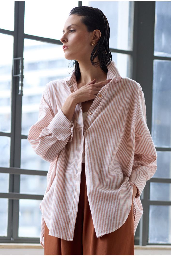 Camisa Doumeria Listras Caramelo