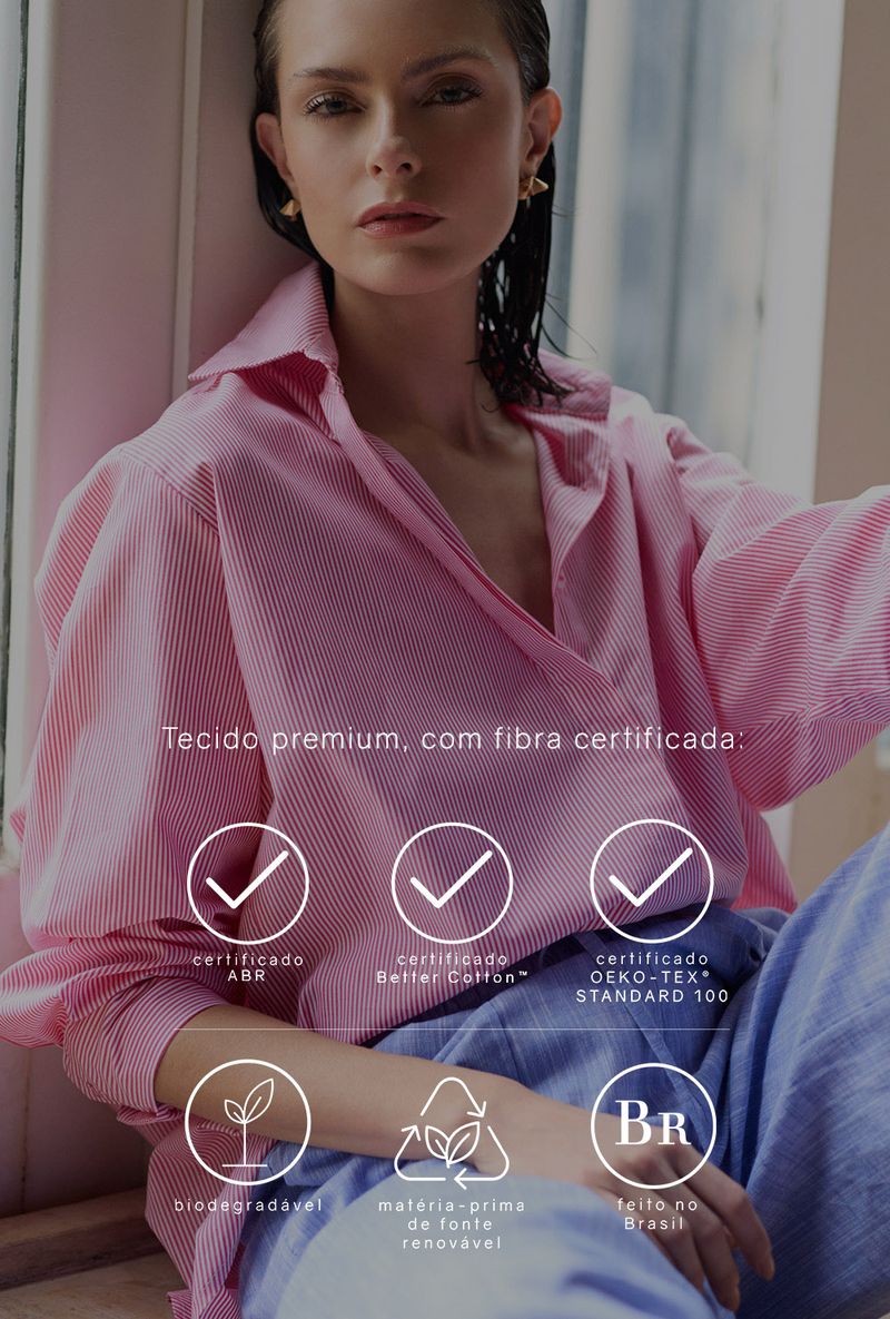 A certificação BCI (Better Cotton Initiative) é um selo que garante que o algodão usado no produto foi produzido de forma mais sustentável promovendo o uso eficiente da água, a redução de produtos químicos perigosos e o respeito aos direitos dos trabalhadores.