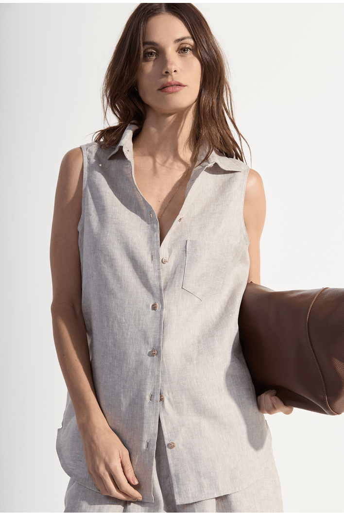 Com design clean e atemporal, esta camisa regata traduz a essência da sofisticação minimalista. Confeccionada em tecido leve e de toque suave, apresenta modelagem reta que proporciona conforto e caimento impecável. O fechamento frontal por botões adiciona um toque clássico, enquanto o bolso aplicado no busto reforça a proposta funcional e elegante da peça. Ideal para composições modernas e versáteis, transita com facilidade entre o casual e o sofisticado, podendo ser usada sozinha ou como base para sobreposições em produções de alfaiataria.