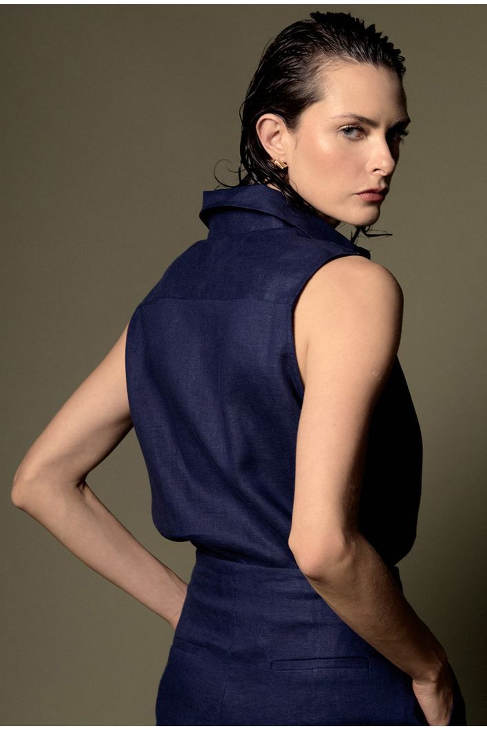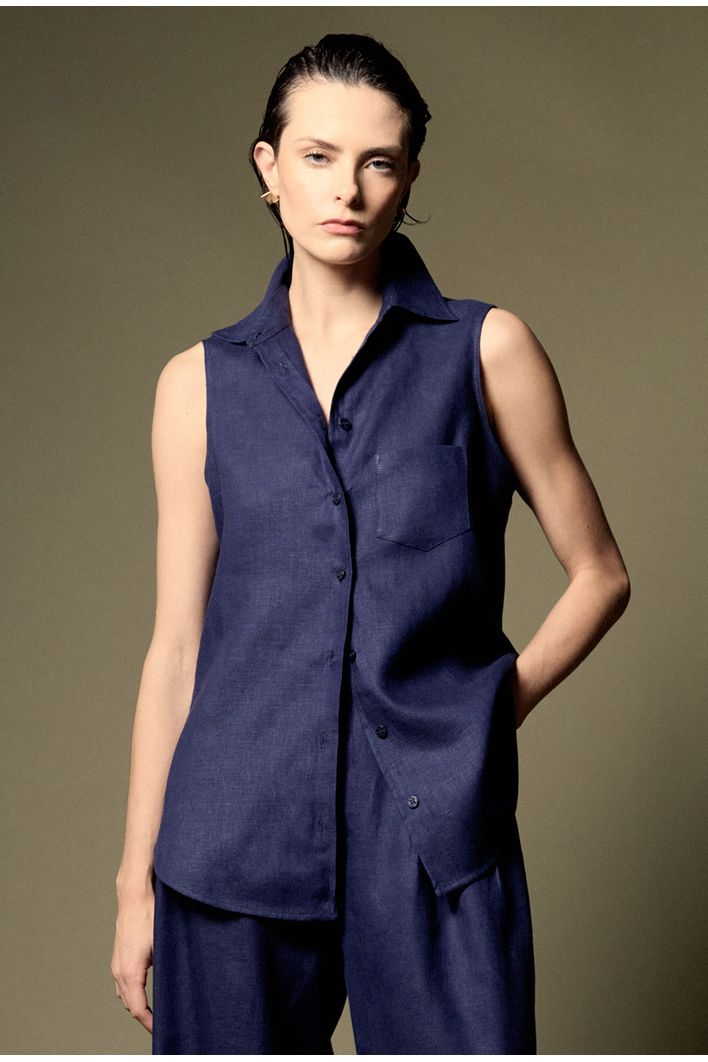 Com design clean e atemporal, esta camisa regata traduz a essência da sofisticação minimalista. Confeccionada em tecido leve e de toque suave, apresenta modelagem reta que proporciona conforto e caimento impecável. O fechamento frontal por botões adiciona um toque clássico, enquanto o bolso aplicado no busto reforça a proposta funcional e elegante da peça. Ideal para composições modernas e versáteis, transita com facilidade entre o casual e o sofisticado, podendo ser usada sozinha ou como base para sobreposições em produções de alfaiataria.