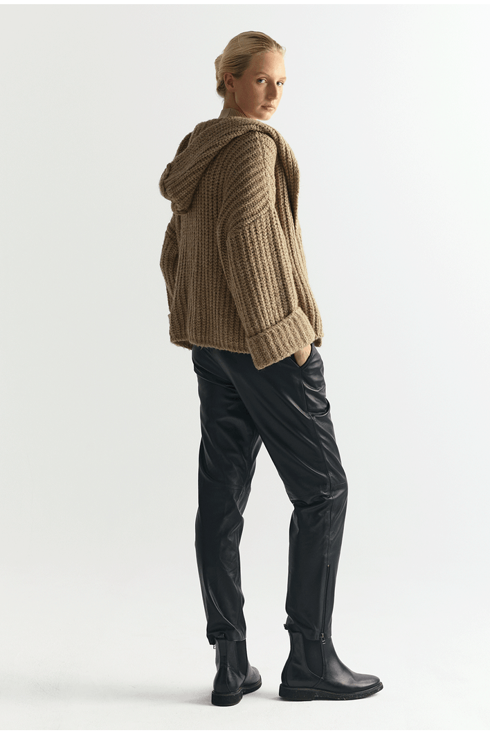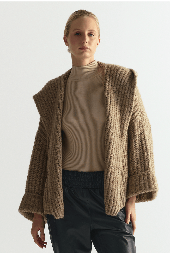 O cardigan feminino em tricot com capuz é a peça ideal para unir conforto e estilo em produções contemporâneas. Com textura encorpada e design acolhedor, proporciona um visual moderno sem abrir mão da praticidade.