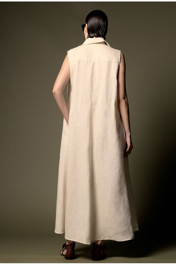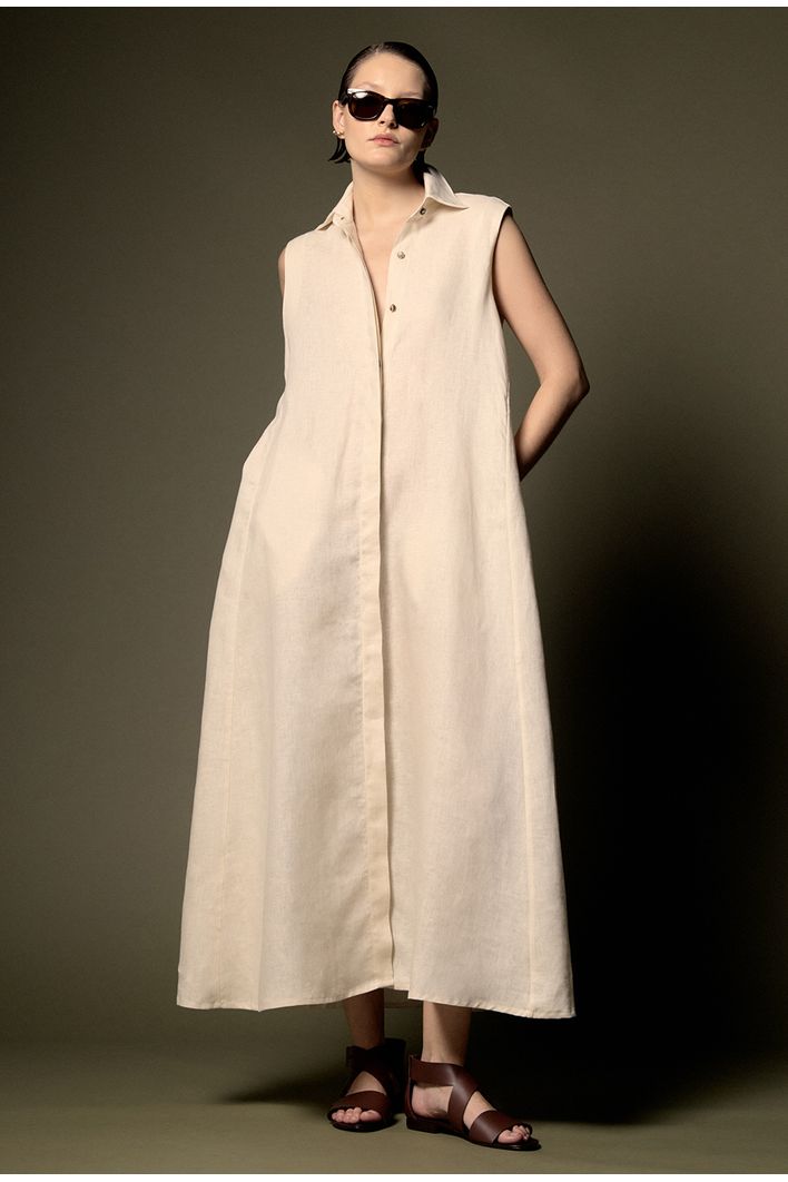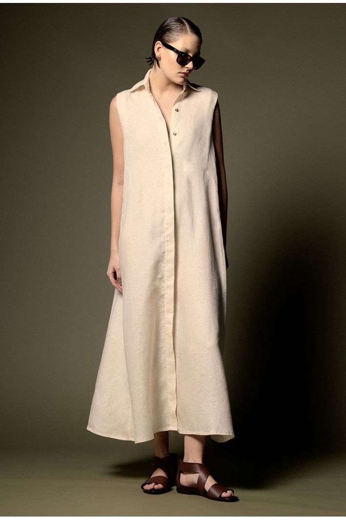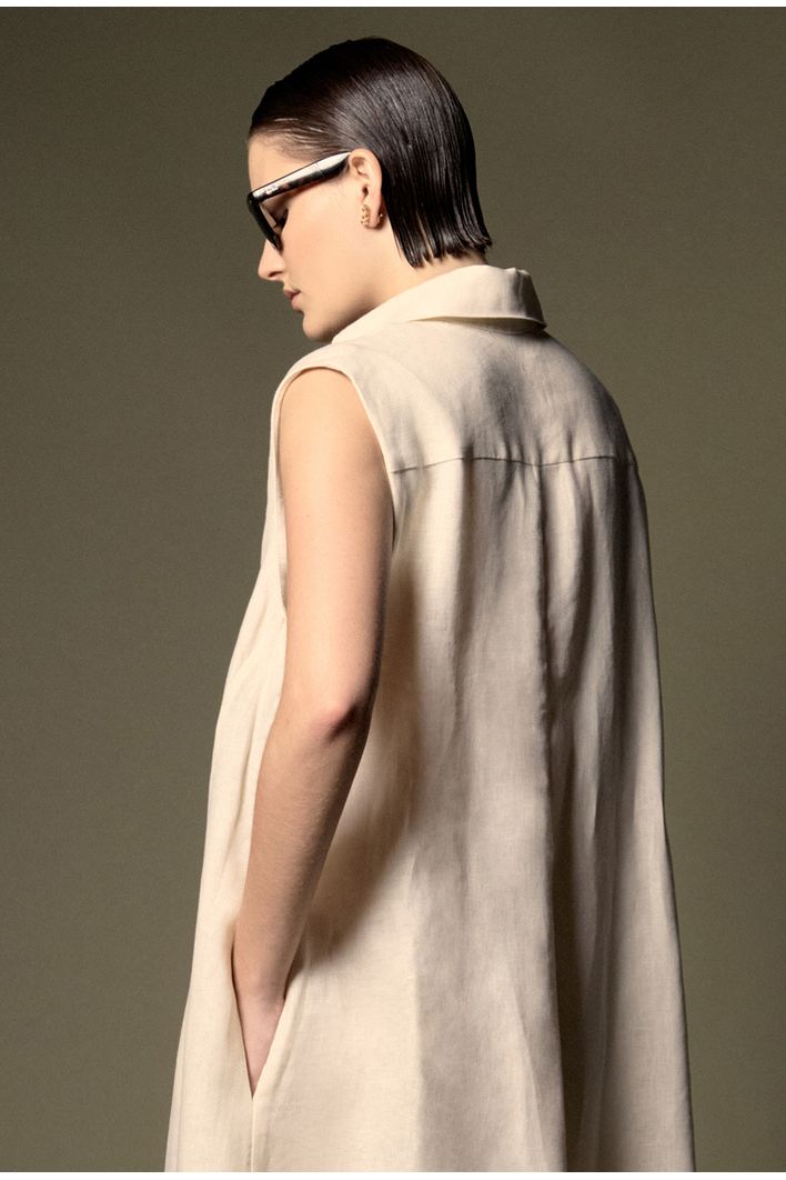 A Chemise Cies, confeccionada em tecido 100% linho, é a escolha perfeita para quem busca uma peça versátil e atemporal. Com comprimento longuete e modelagem evasê, proporciona leveza e movimento, ideal para diversas ocasiões. Sem mangas e com abotoamento frontal, essa chemise permite múltiplas formas de uso: totalmente aberta como sobreposição, fechada como vestido ou em composições modernas com calças e cintos. É uma peça que inspira criatividade e liberdade para criar looks únicos, aliando sofisticação e conforto.