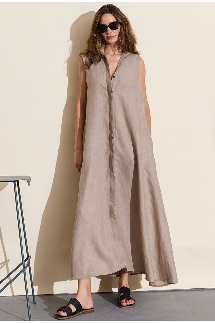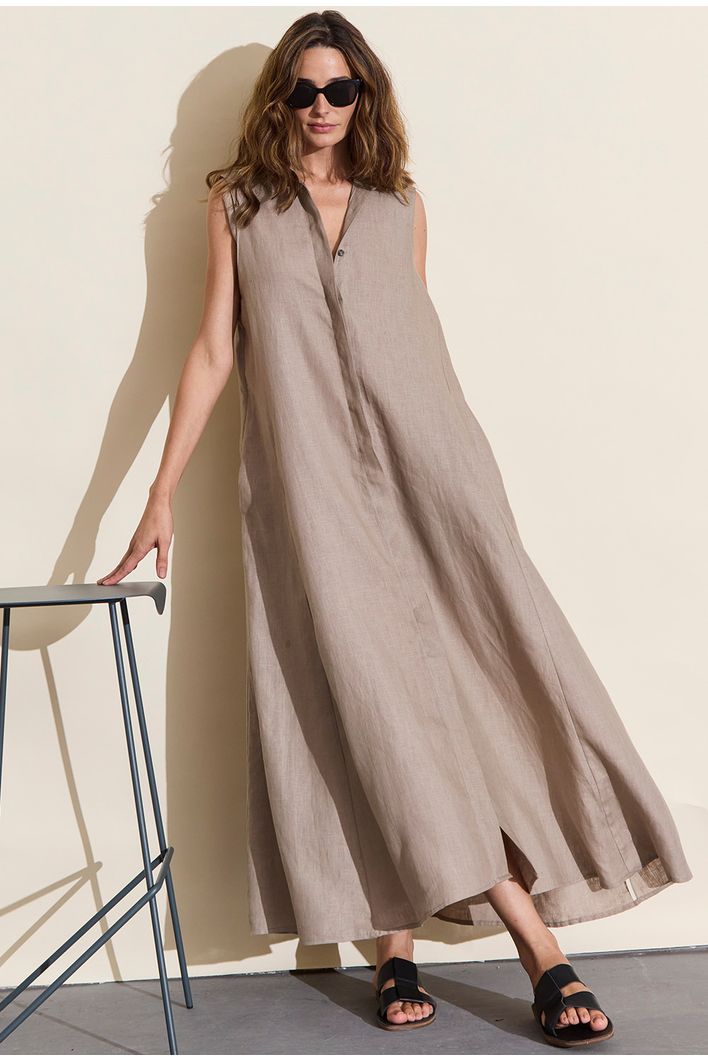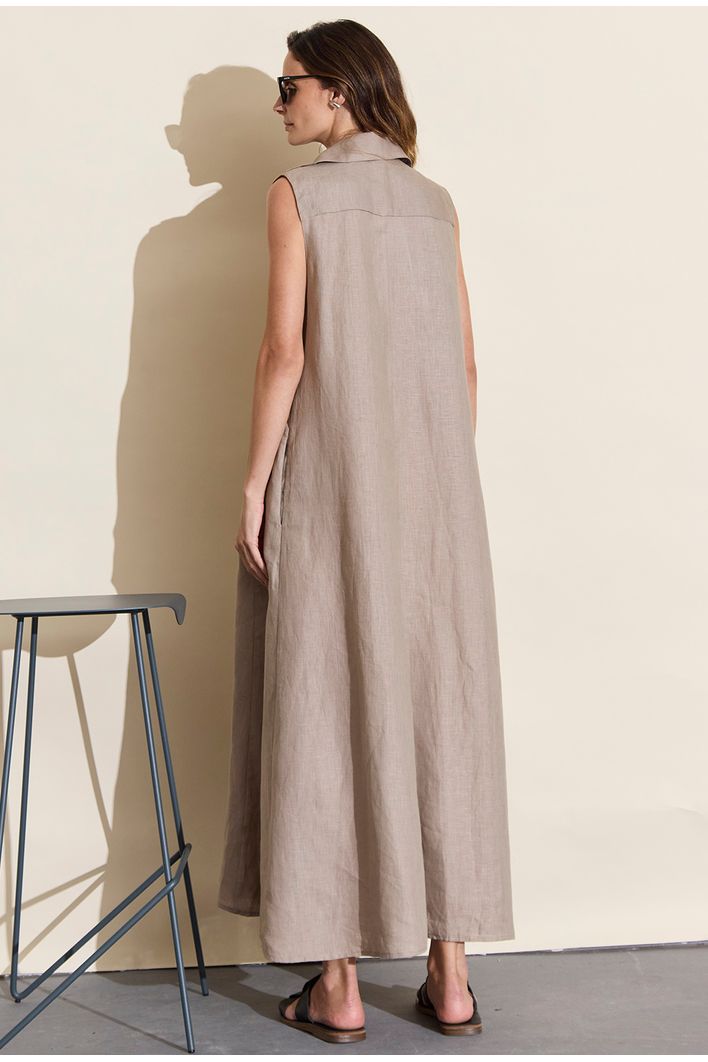 A Chemise Cies, confeccionada em tecido 100% linho, é a escolha perfeita para quem busca uma peça versátil e atemporal. Com comprimento longuete e modelagem evasê, proporciona leveza e movimento, ideal para diversas ocasiões. Sem mangas e com abotoamento frontal, essa chemise permite múltiplas formas de uso: totalmente aberta como sobreposição, fechada como vestido ou em composições modernas com calças e cintos. É uma peça que inspira criatividade e liberdade para criar looks únicos, aliando sofisticação e conforto.