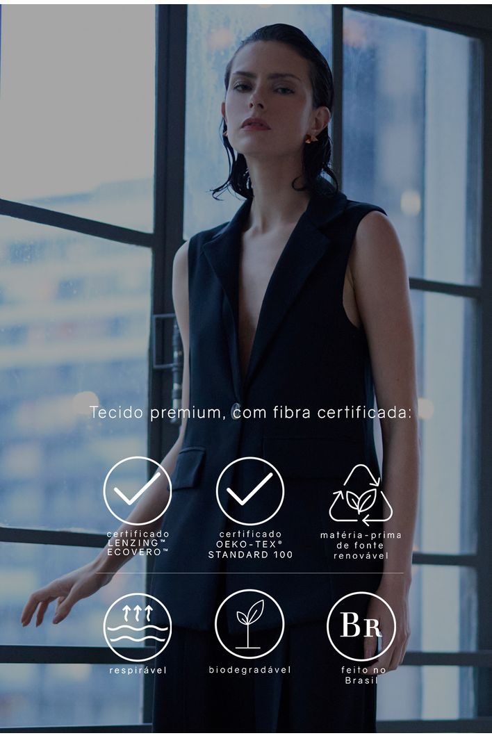 O tecido utilizado nesta peça possui certificação Viscose LENZING e OEKO-TEX® Standard 100.