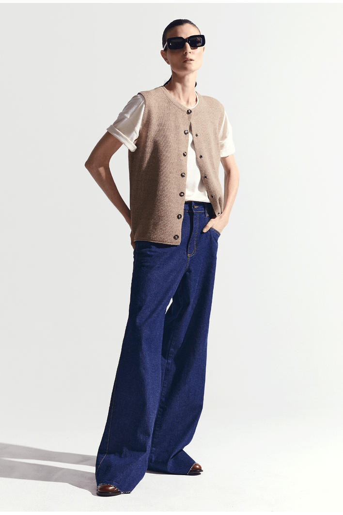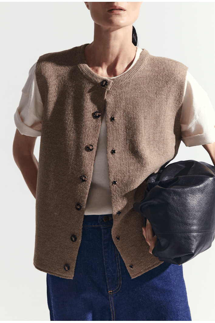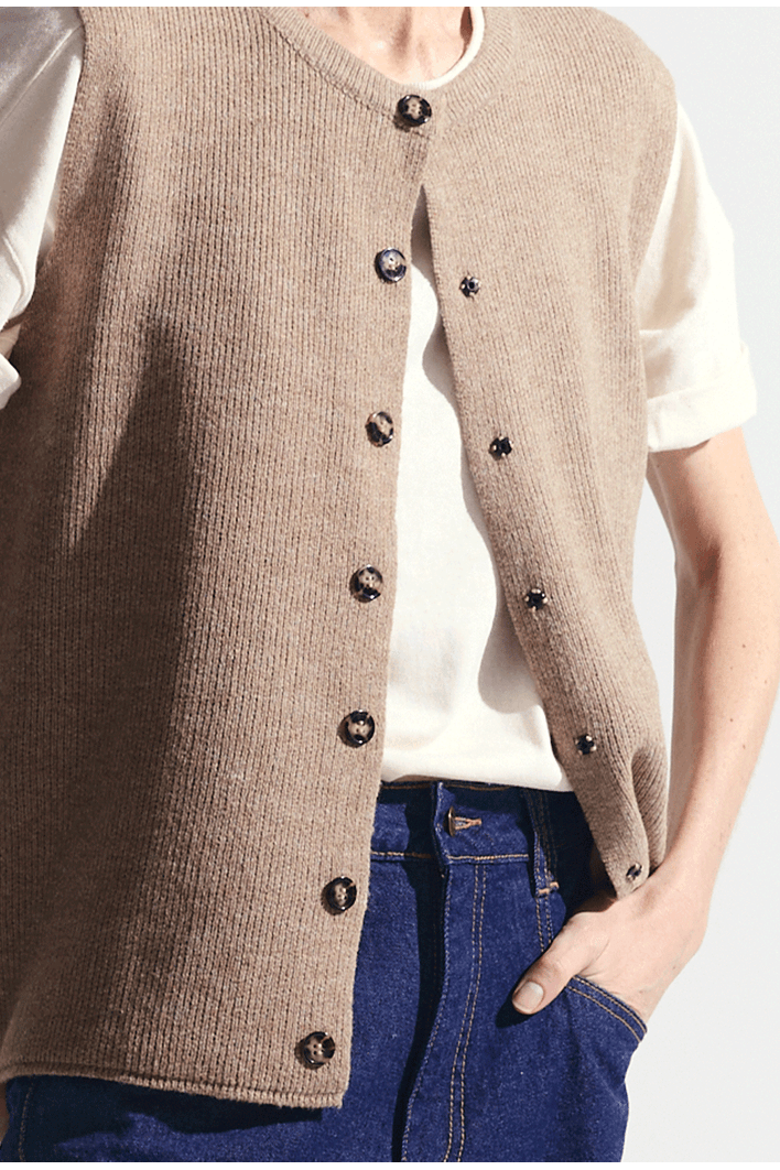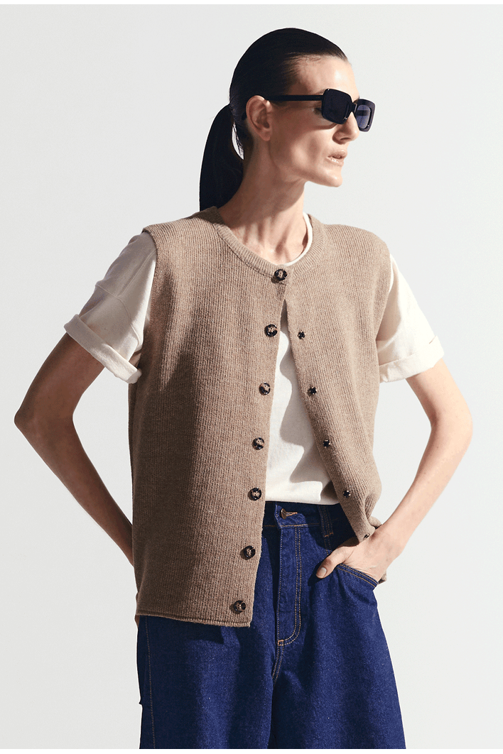 Colete Feminino em Tricô com Botões Frontais - MyBasic