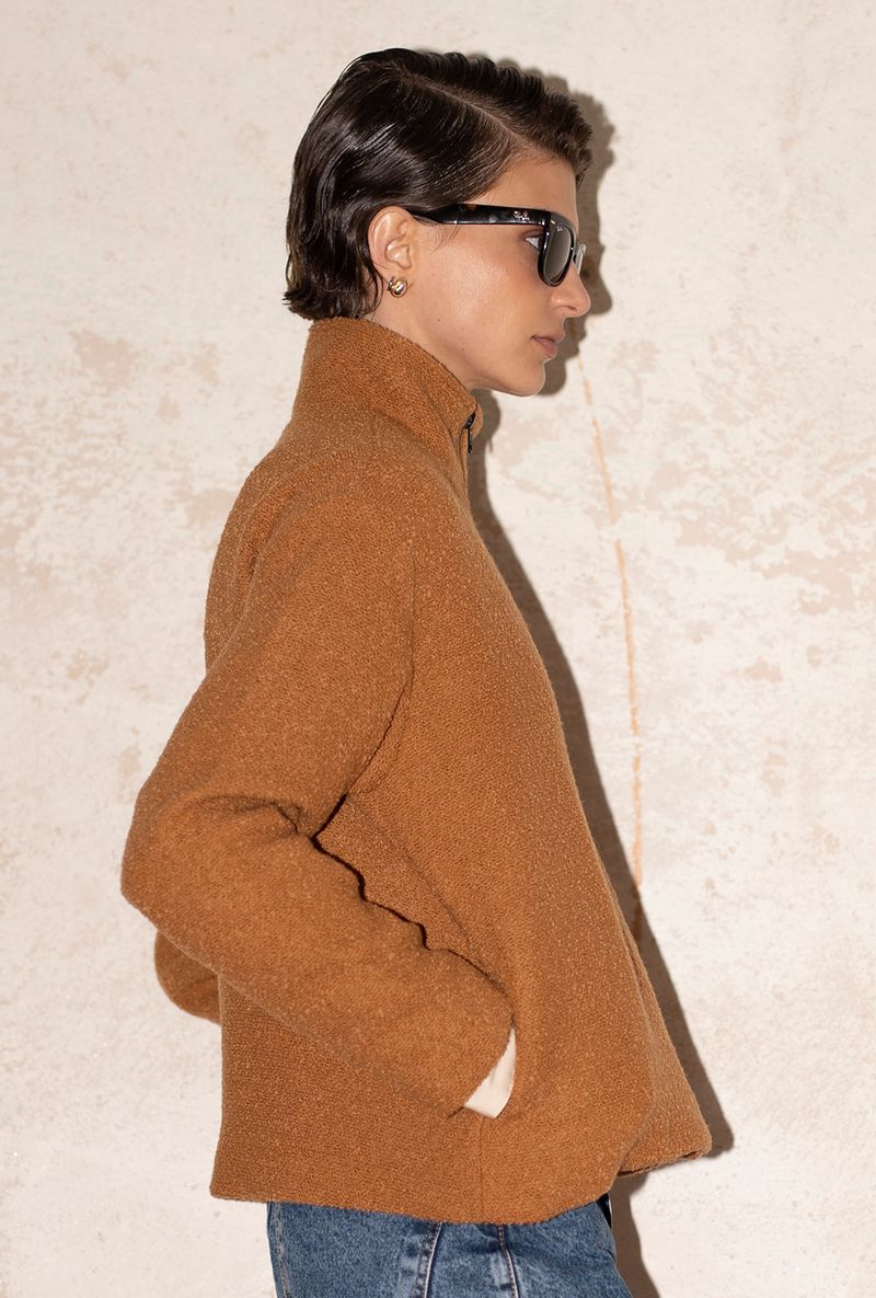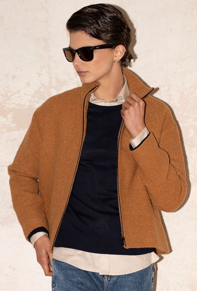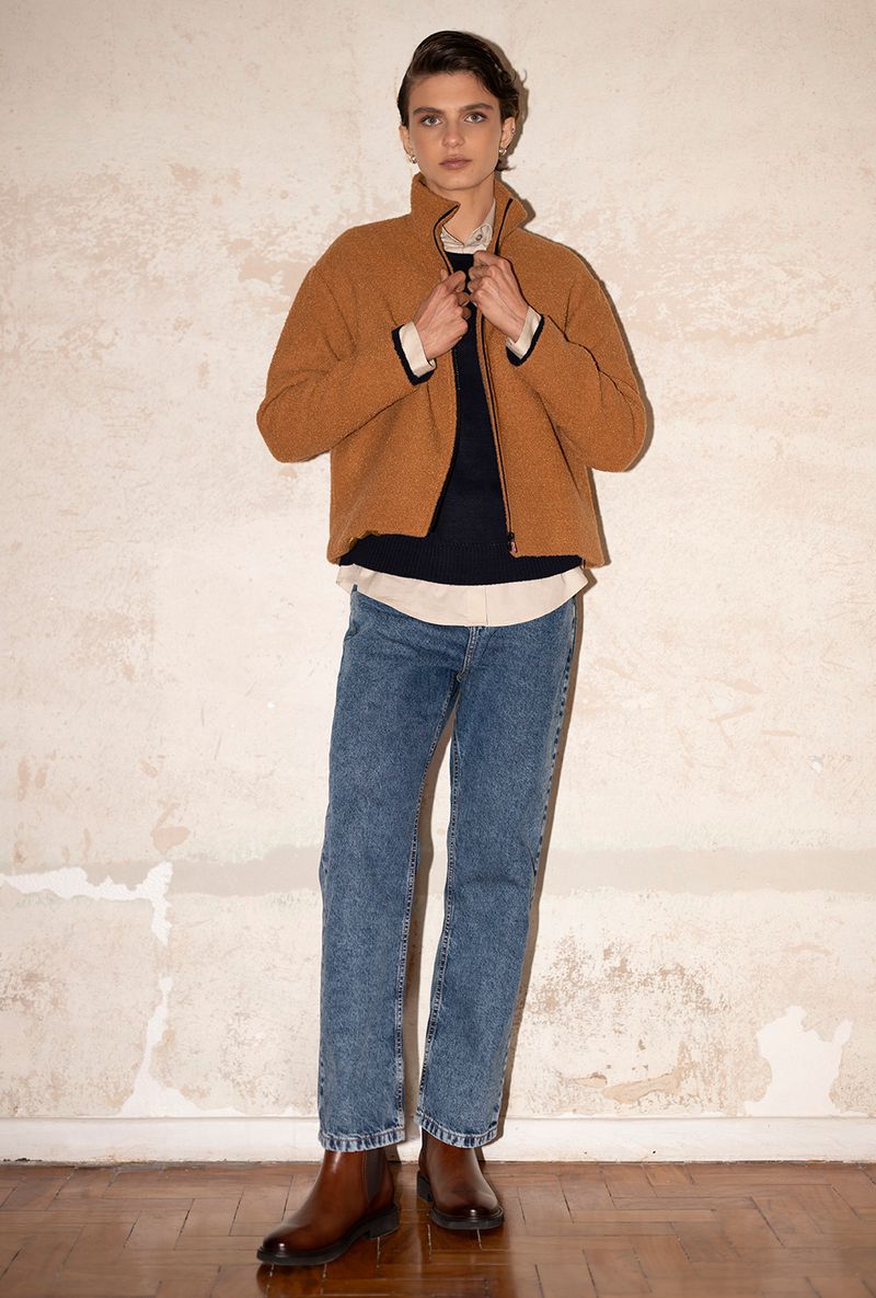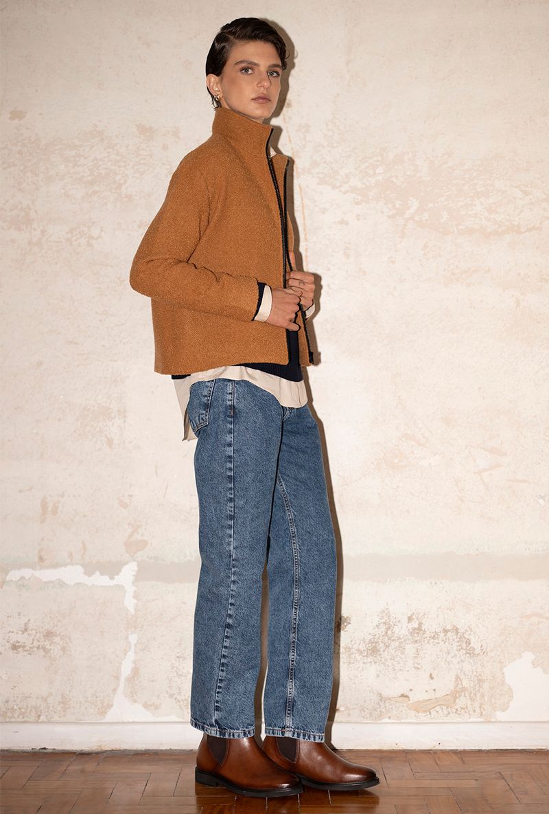 A Jaqueta Chipre é a definição de elegância descomplicada. Com modelagem levemente ampla, ela traz estrutura e conforto, além de uma gola alta que adiciona personalidade ao visual. Os bolsos frontais reforçam a praticidade do dia a dia, enquanto o acabamento impecável garante um toque sofisticado.