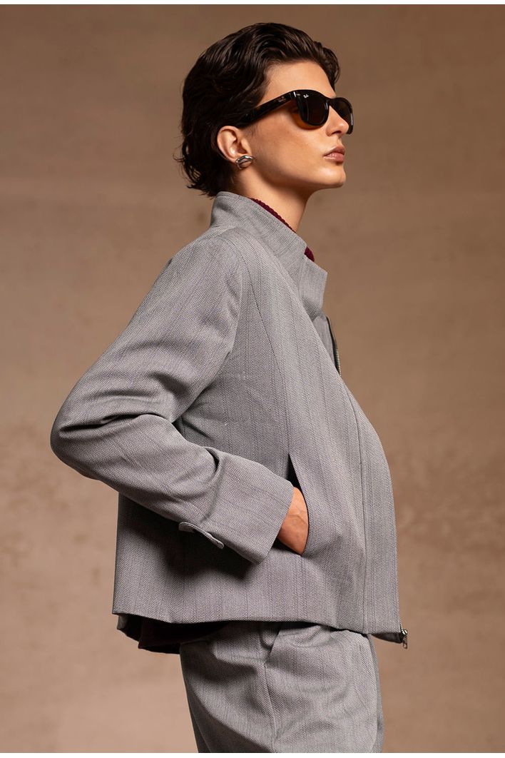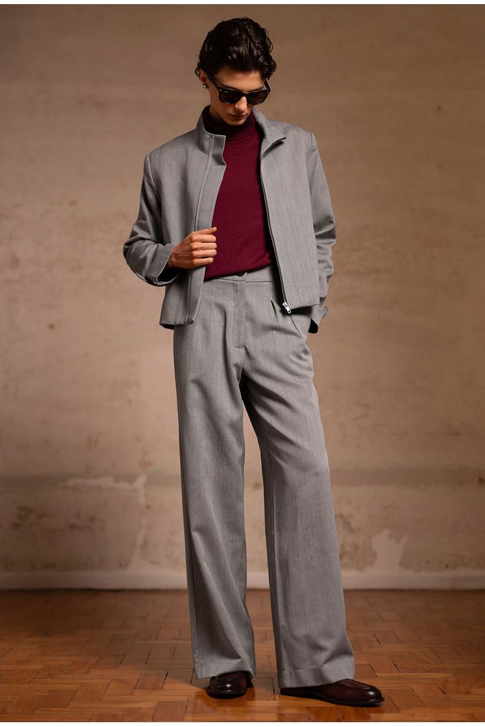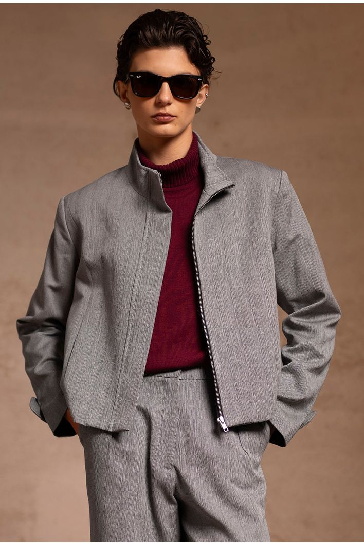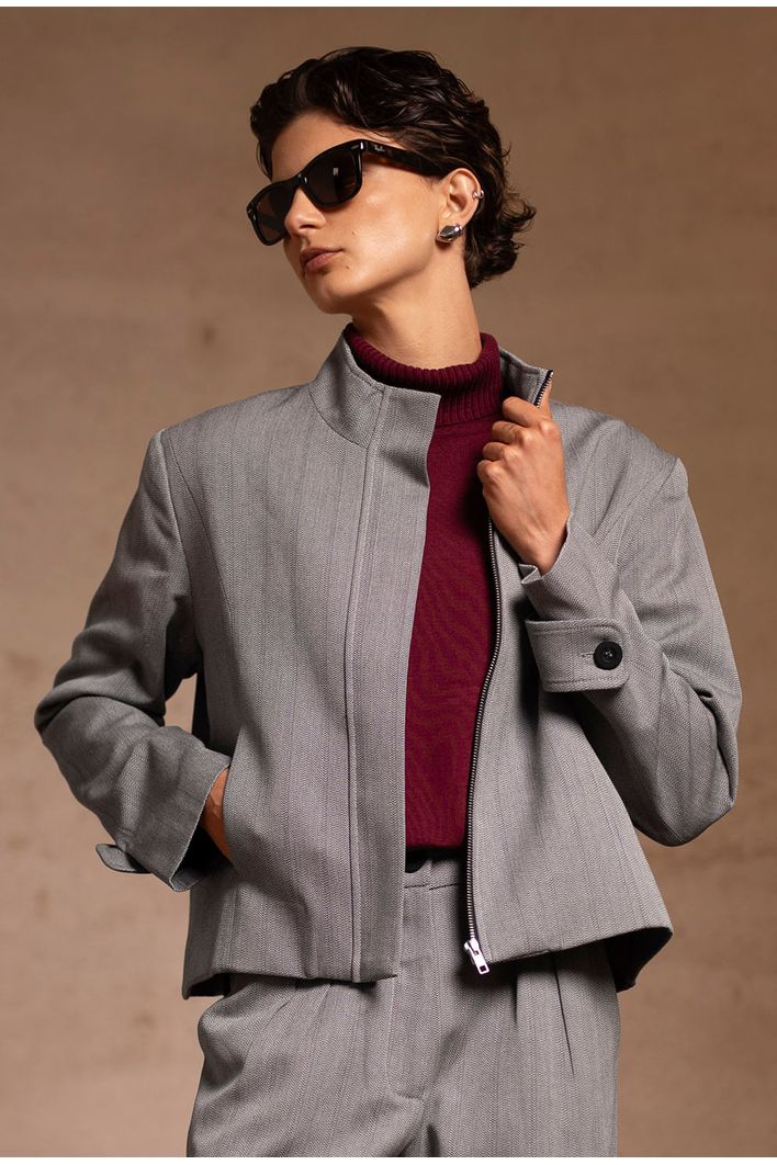 A Jaqueta Guaiteca traduz a força do minimalismo com um toque refinado. De corte reto e silhueta estruturada, ela apresenta uma gola alta imponente e fechamento por zíper oculto, que reforça a estética clean e moderna da peça. Confeccionada em tecido de alfaiataria com padronagem discreta e textura elegante, a jaqueta traz ainda detalhes funcionais como bolsos laterais e punhos com abotoamento. Ideal para composições monocromáticas ou sobreposições sofisticadas, ela é a escolha certa para quem busca versatilidade com personalidade no seu dia a dia.