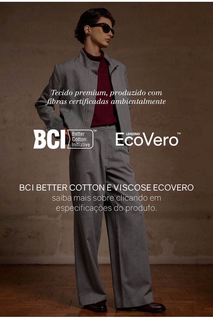 O tecido utilizado nesse modelo, possui duas certificações: Algodão BCI e viscose Lenzing