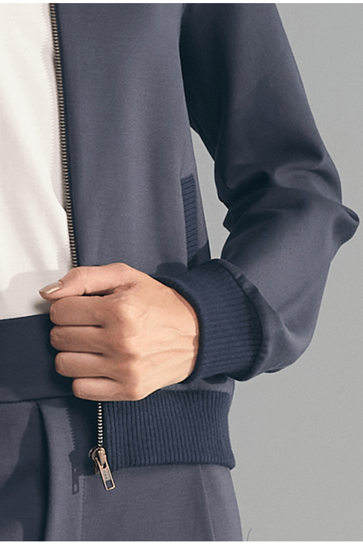 Possui fechamento frontal por zíper, bolsos funcionais e acabamento canelado nos punhos, gola e barra, que garantem melhor ajuste ao corpo. Uma peça atemporal que se adapta facilmente a diferentes combinações.