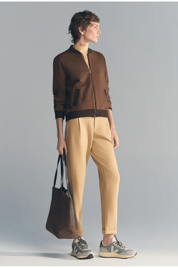 Possui fechamento frontal por zíper, bolsos funcionais e acabamento canelado nos punhos, gola e barra, que garantem melhor ajuste ao corpo. Uma peça atemporal que se adapta facilmente a diferentes combinações.