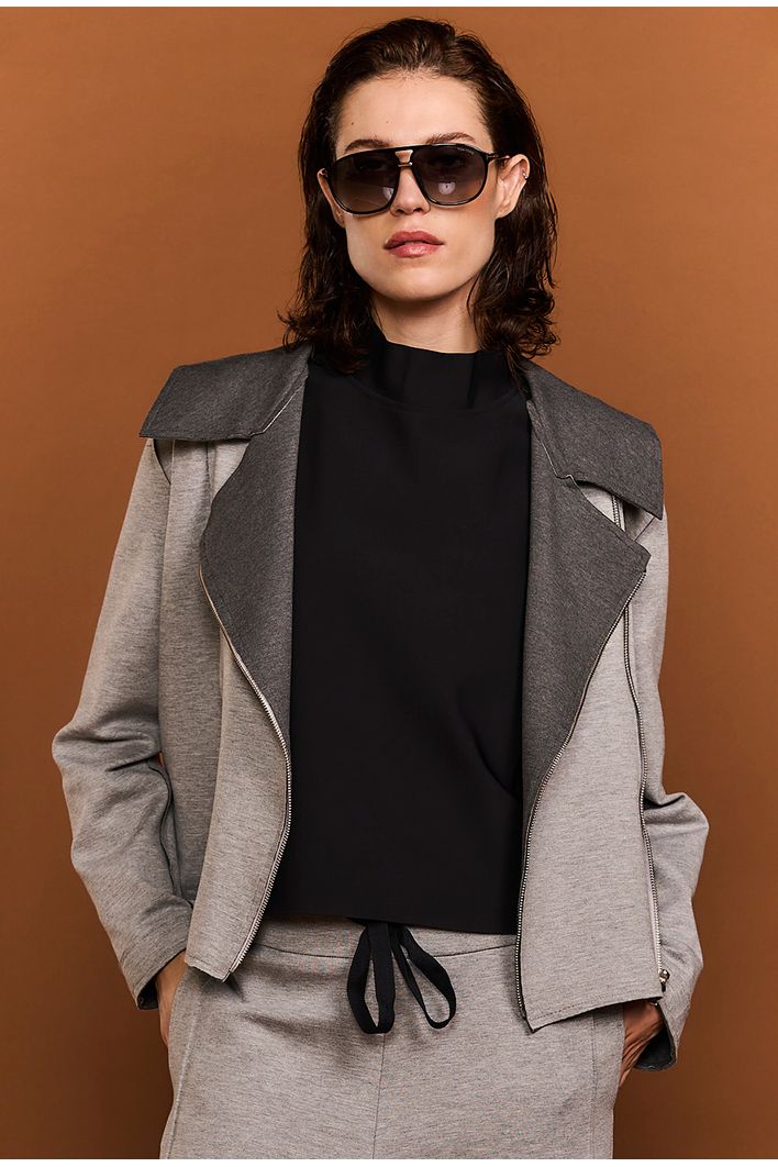 Com modelagem moderna, zíper frontal e acabamento impecável, é uma peça versátil que eleva qualquer produção com praticidade e personalidade. Ideal para compor looks urbanos com atitude discreta e toque contemporâneo.