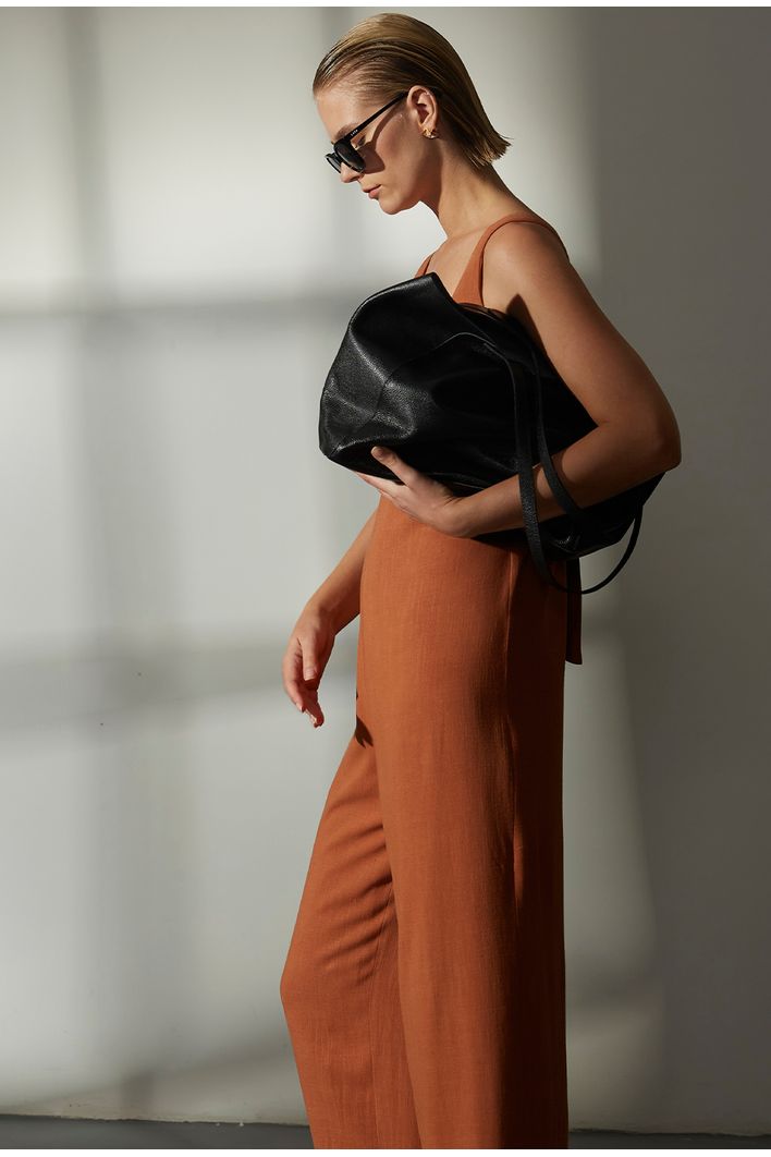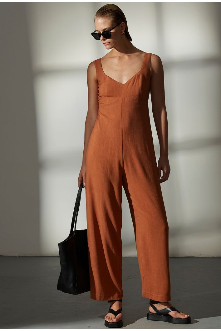 O macacão La Palma é um basic prático e muito elegante. É confeccionado em tecido de viscose estonada, o que garante frescor, leveza e um lindo caimento. Possui decote coração, modelagem mais justinha e amarração nas costas que trazem ainda mais charme para este macacão. É ideal para dias quentes. É o tipo de peça que vai muito bem sozinha, mas também pode ser estilizada em diversos moods, tudo dependendo da escolha dos demais elementos de composição. Para quem deseja um visual mais despojado, por exemplo, pode ser usado com sobreposição em denim e acessórios mais divertidos como os de miçangas. Já para visuais mais sofisticados a dica é apostar em acessórios mais delicados e sobreposições em tecelagem menos espessas.