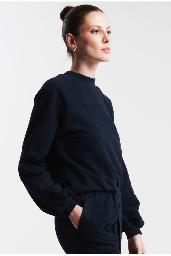 Nossa blusa Ruse é um basic confortável e charmoso, ideal para os dias mais frios. Feito em moletom 100% algodão, possui o toque macio e quentinho. Sua modelagem é levemente ampliada e possui cordinha na barra, que faz com que a peça fique franzida. É feito com textura quadriculada especial, sendo o tecido da mesma cor, apenas com o toque diferente.