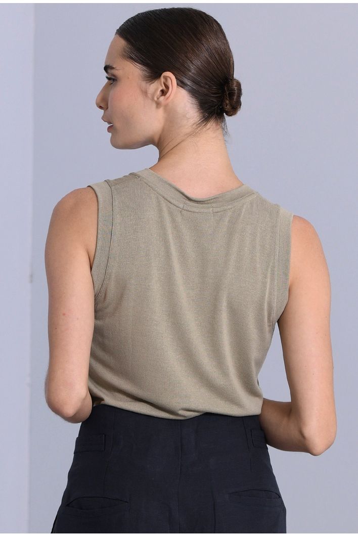A regata Anzhu é um básico charmoso e versátil, perfeito para diversas ocasiões. Feita com tecido de viscose de alta qualidade, complementado por uma pequena porcentagem de elastano da renomada marca LYCRA®, esta regata oferece um toque suave e um conforto excepcional. Por que a LYCRA® é tão diferencial? A presença do elastano da marca LYCRA® faz toda a diferença. A LYCRA® é conhecida mundialmente por sua qualidade e durabilidade. Esta fibra elástica de alta tecnologia proporciona uma excelente elasticidade à regata, garantindo um ajuste perfeito ao corpo e uma sensação de liberdade nos movimentos. Isso significa que a regata Anzhu não apenas mantém sua forma, mas também se adapta ao seu corpo, proporcionando conforto e versatilidade incomparáveis.