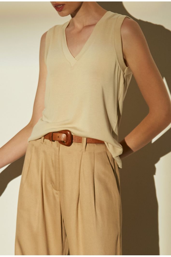 A regata Anzhu é um básico charmoso e versátil, perfeito para diversas ocasiões. Feita com tecido de viscose de alta qualidade, complementado por uma pequena porcentagem de elastano da renomada marca LYCRA®, esta regata oferece um toque suave e um conforto excepcional.