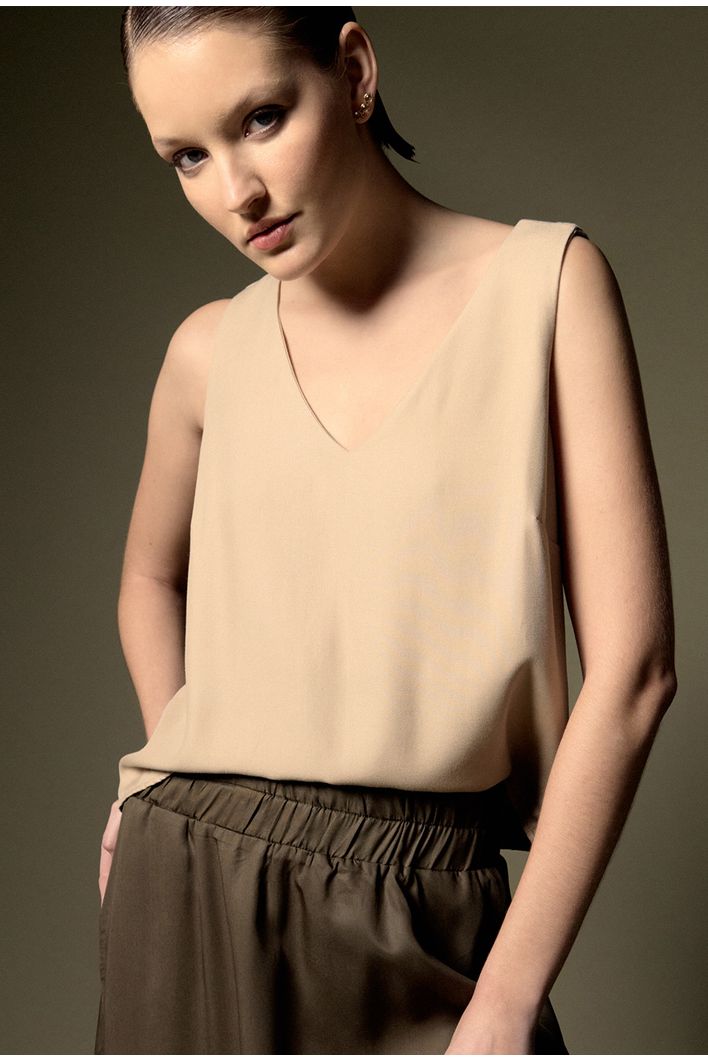 A regata Astove é feita em uma viscose premium, com toque acetinado e caimento impecável. Peça coringa, base para várias produções de verão, do trabalho ao final de semana, das produções mais casuais até as mais elaboradas.