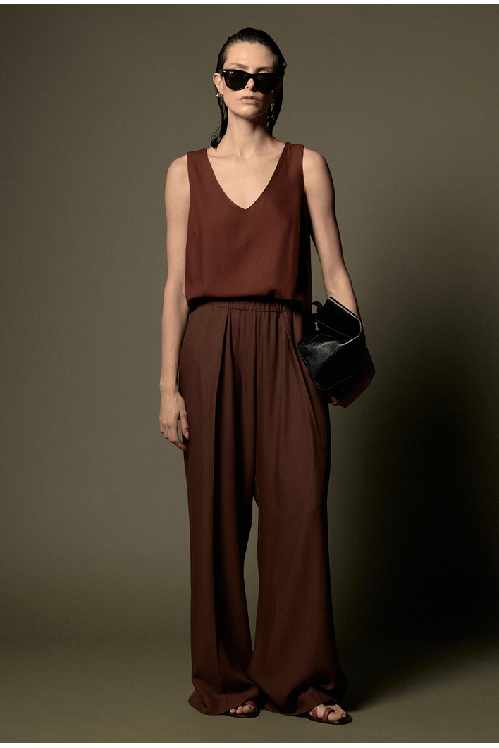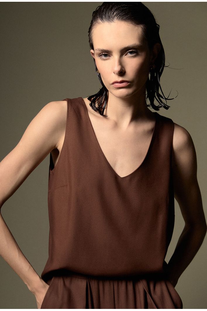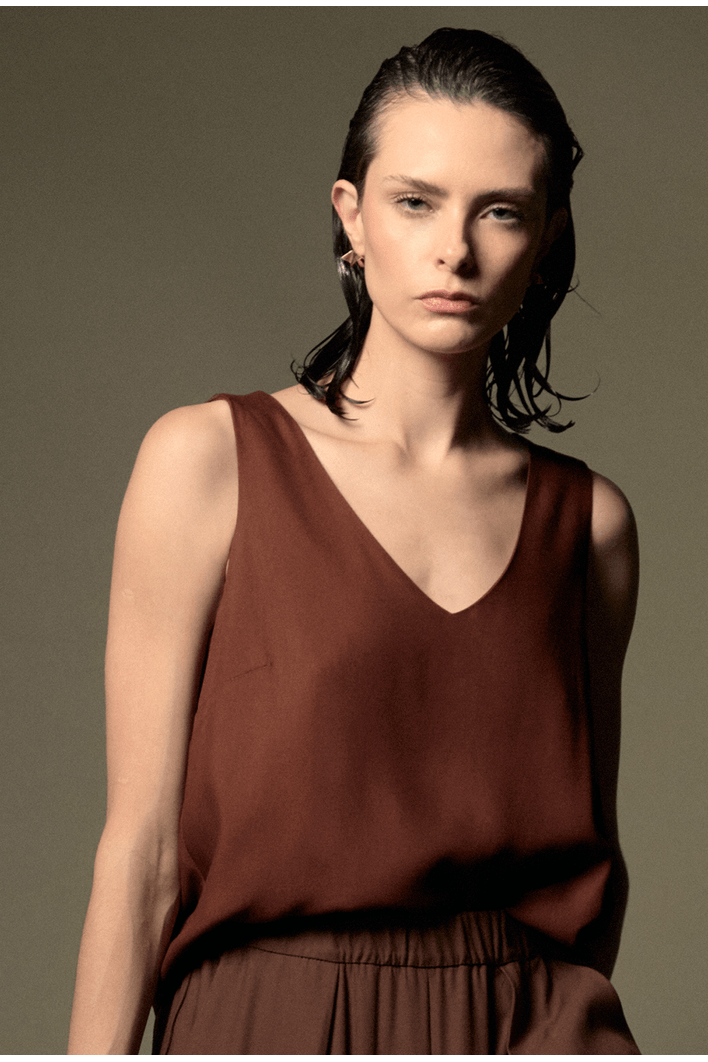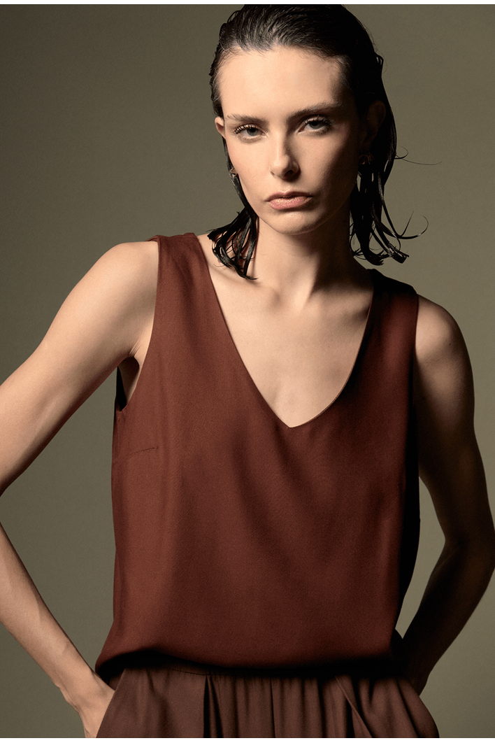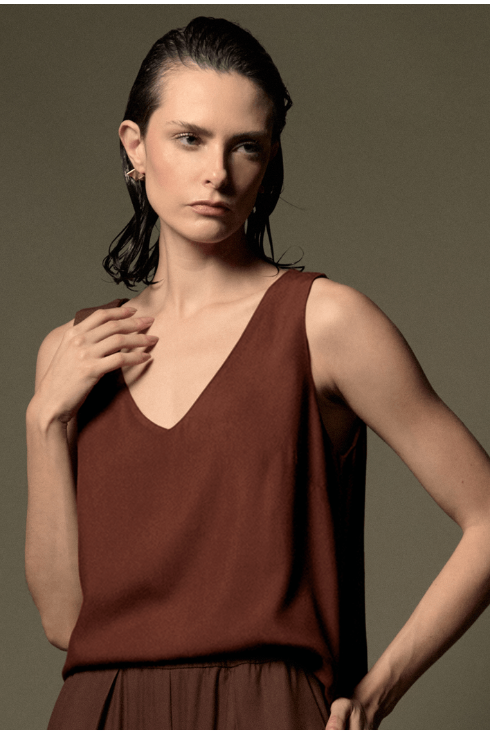 A regata Astove é feita em uma viscose premium, com toque acetinado e caimento impecável. Peça coringa, base para várias produções de verão, do trabalho ao final de semana, das produções mais casuais até as mais elaboradas.