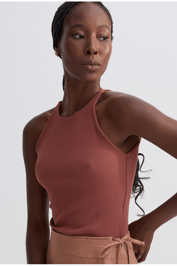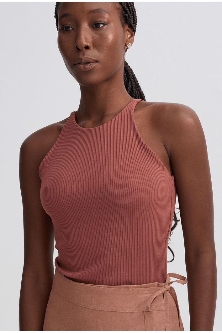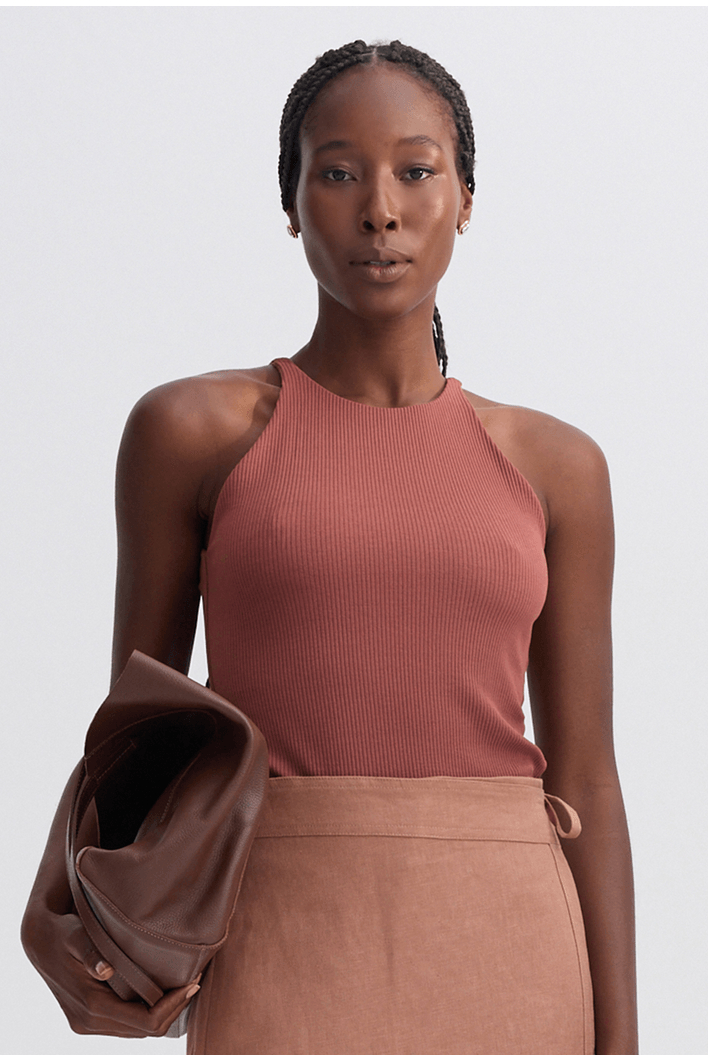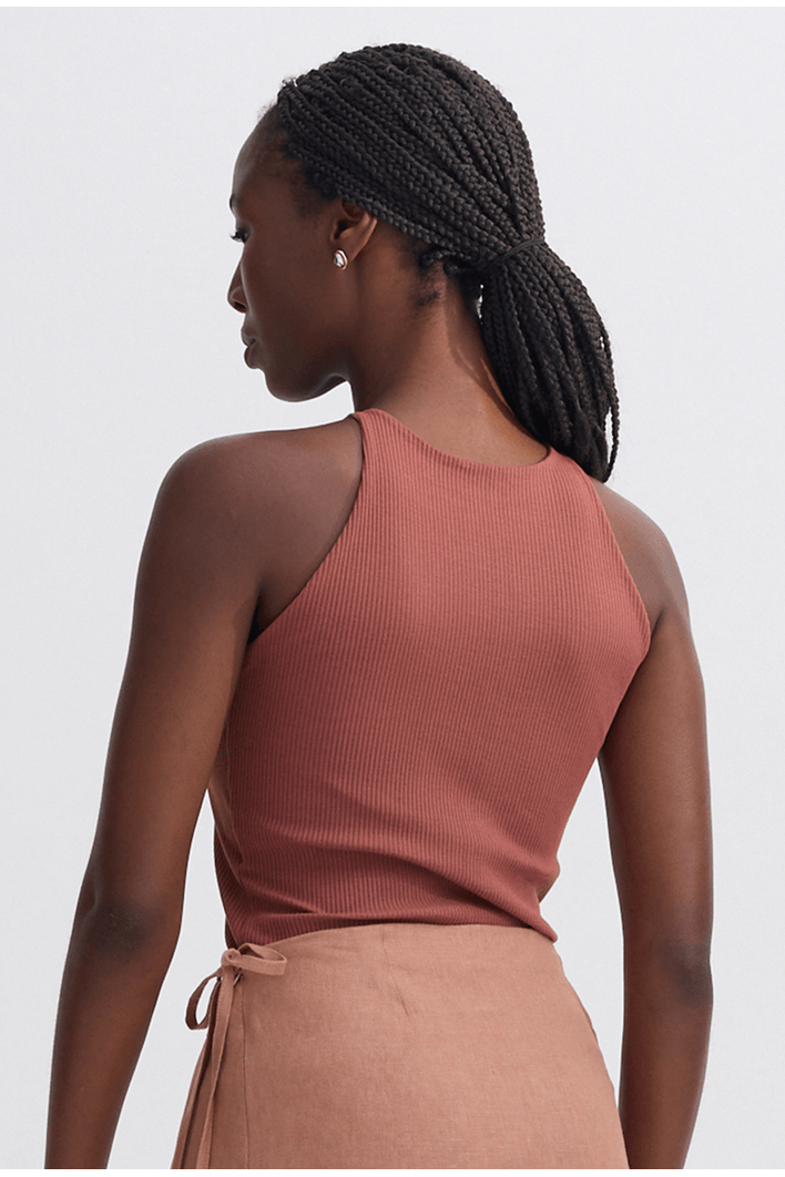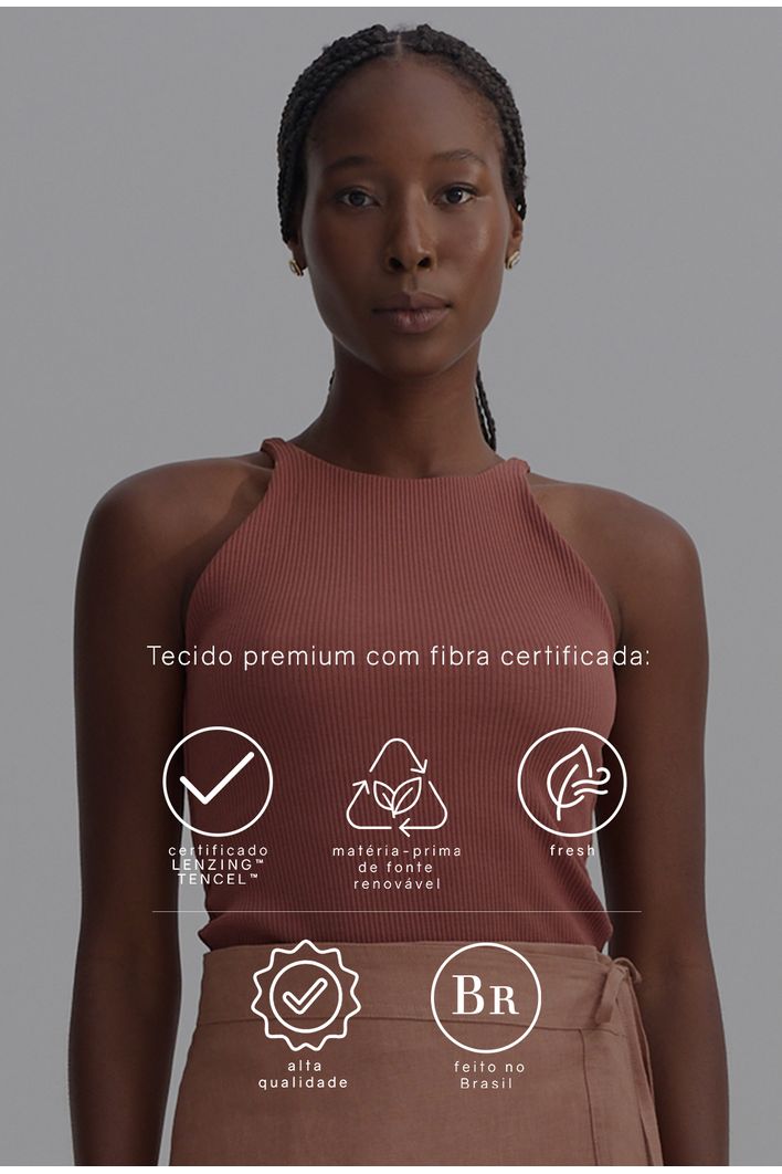 Feita em tecido canelado, a regata cassena possui modelo halter neck e shape justo. É um item essencial e versátil que veste para várias ocasiões, desde um look para trabalho até um jantar com amigos.