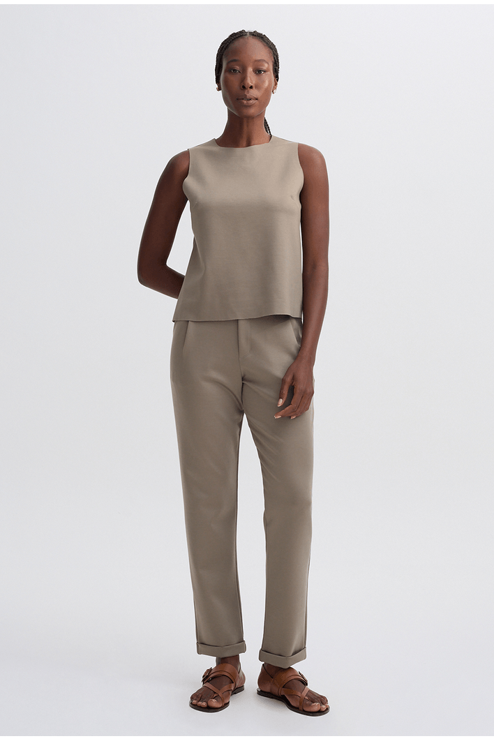 Com toque macio e caimento sutilmente estruturado, a Regata Catania é produzida em malha de alta qualidade de lyocell e conta com modelagem levemente acinturada e acabamento a fio.
