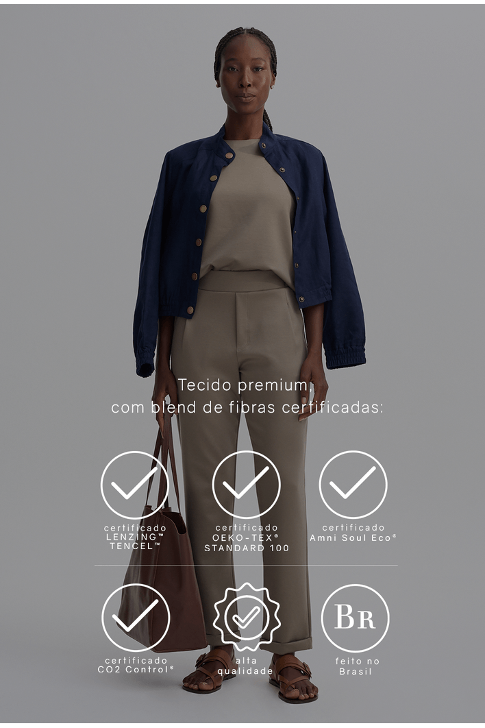 O tecido utilizado nesse modelo possui duas certificações: OEKO-TEX, Lyocell LENZING e Amni Soul Eco.