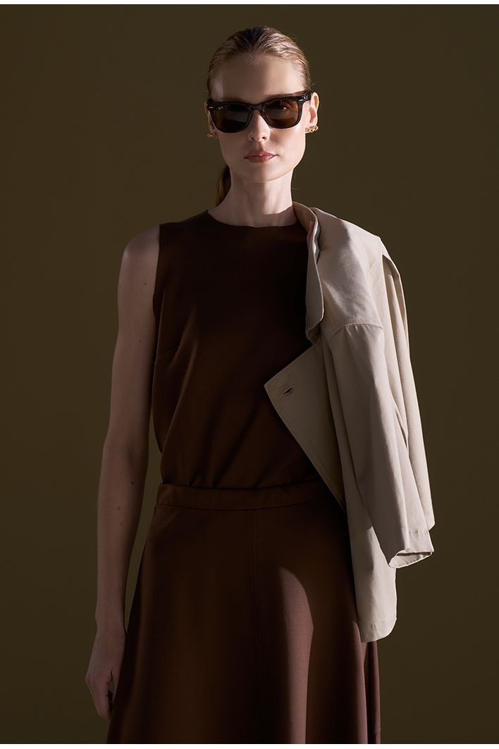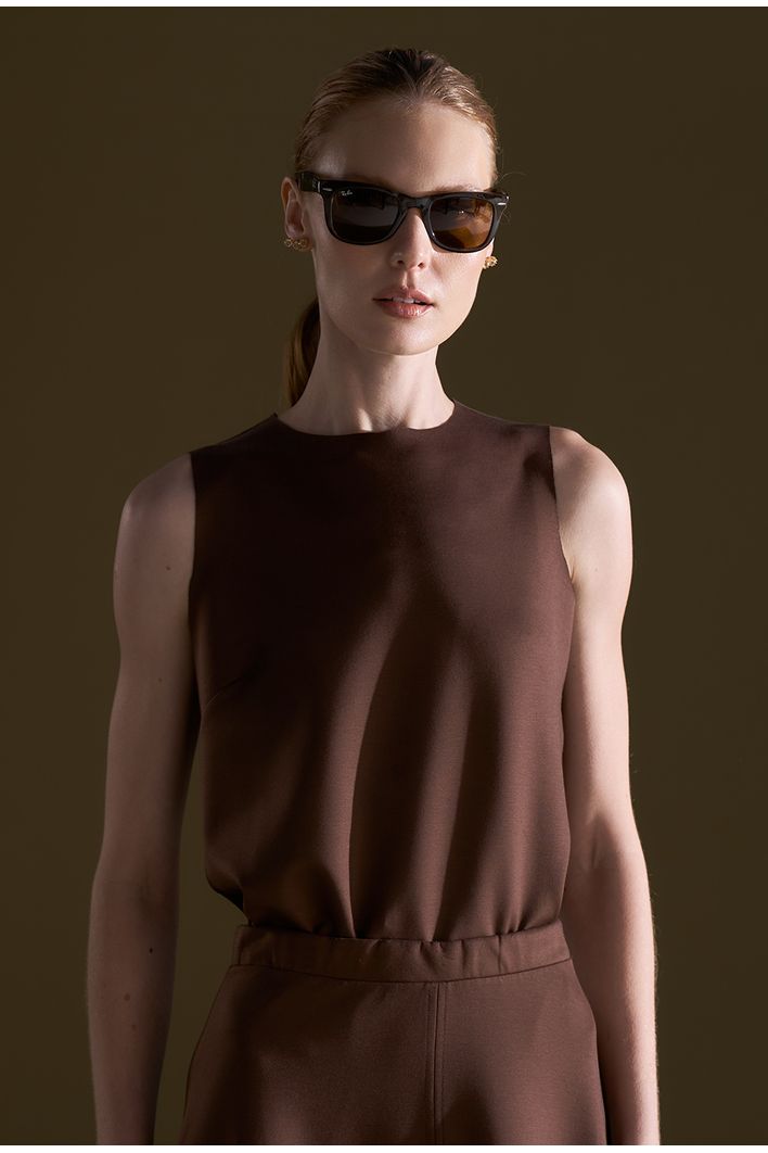 Com toque macio e caimento sutilmente estruturado, a Regata Catania é produzida em malha de alta qualidade de lyocell e conta com modelagem levemente acinturada e acabamento a fio.