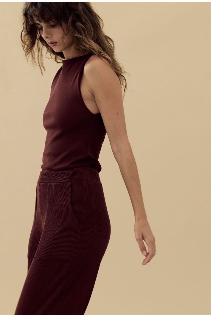 A Regata Dias é confeccionada em malha de viscose encorpada, um tecido que alia toque macio, elasticidade e caimento impecável. Essa malha garante conforto e estrutura, permitindo um ajuste perfeito ao corpo sem perder a leveza e a respirabilidade.