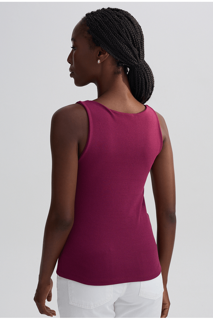 O decote quadradoé o grande destaque da peça, trazendo um toque moderno e sofisticado, além de valorizar a região do colo e alongar a silhueta. O design minimalista e a modelagem ajustada fazem da Regata Dias uma peça versátil e atemporal, perfeita para composições elegantes ou casuais.