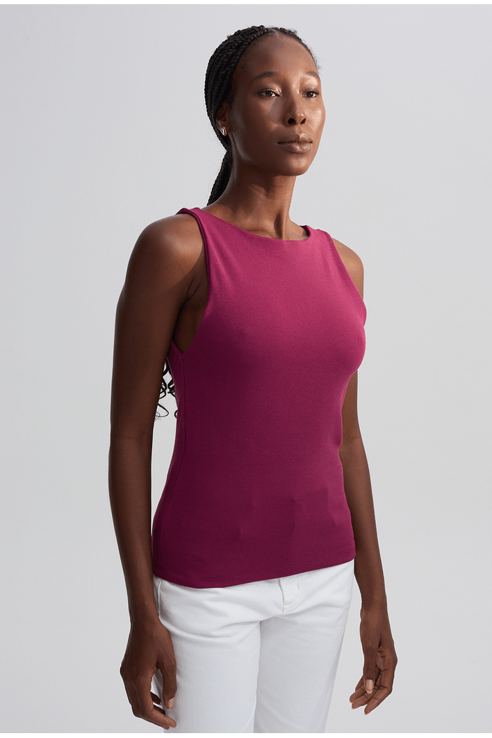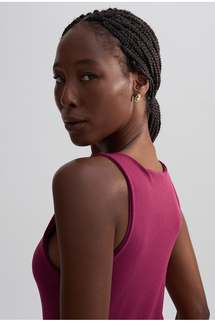 A Regata Dias é confeccionada em malha de viscose encorpada, um tecido que alia toque macio, elasticidade e caimento impecável. Essa malha garante conforto e estrutura, permitindo um ajuste perfeito ao corpo sem perder a leveza e a respirabilidade.
