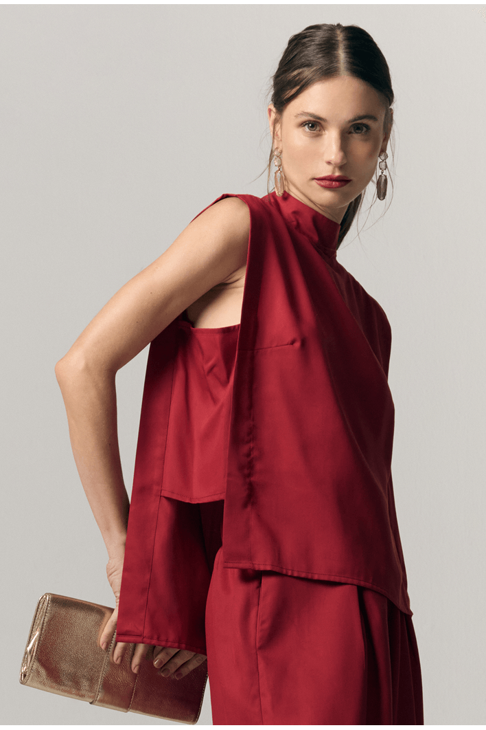 A regata apresenta um design minimalista e sofisticado, com modelagem reta e gola alta que adiciona um toque moderno ao visual. Confeccionada em tecido leve e fluido, garante caimento elegante e conforto ao vestir. Sem mangas e com acabamento impecável, é uma peça versátil que transita facilmente entre produções casuais e refinadas. Ideal para compor looks contemporâneos com alfaiataria, saias ou jeans, mantendo sempre uma estética clean e atemporal.
